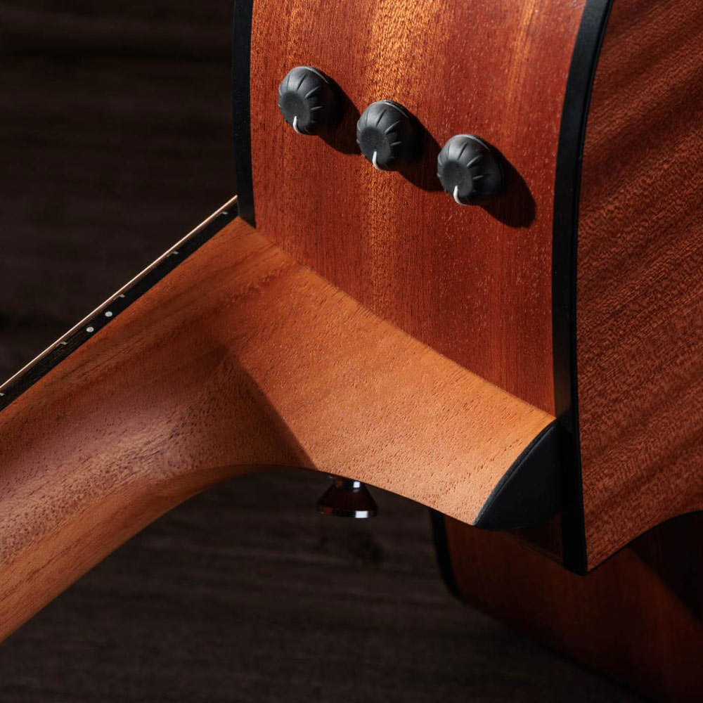 Sapele Body Wood: Sapele’s tonal output is consistent and balanced across the tonal spectrum, making it compatible with a diverse range of playing styles. It’s comparable to mahogany but its higher density tends to produce a slightly brighter sound with more top-end shimmer.