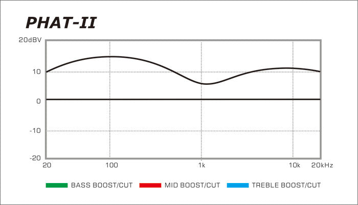 • Phat II EQ: Phat II active bass boost adds additional low-end power.