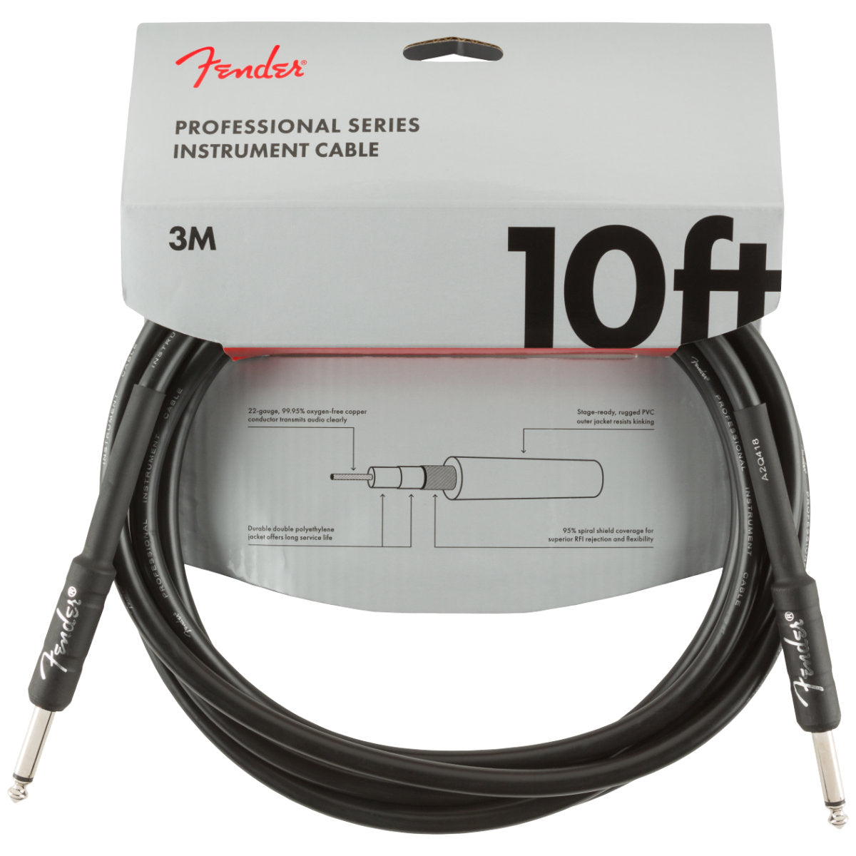 Fender Professional Series Instrument Cables - Straight/Straight - 10ft - Black