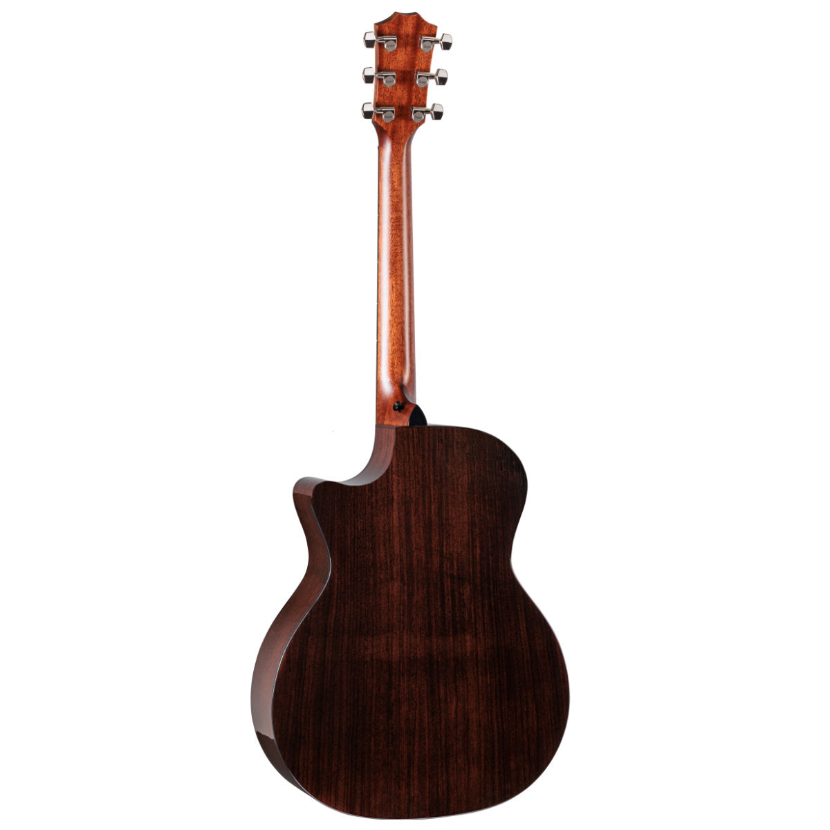 Solid rosewood and Sitka spruce, together with Taylor's versatile Grand Auditorium shape, translate into a classic workhorse instrument for fans of rosewood’s deep lows and sparkling highs. Scalloped V-Class bracing and the long-tenon neck add more warmth and richness across the tonal spectrum, especially in the mids. Gigging players will love the onboard Claria electronics, which make it easy to shape their amplified sound for any performance setting.