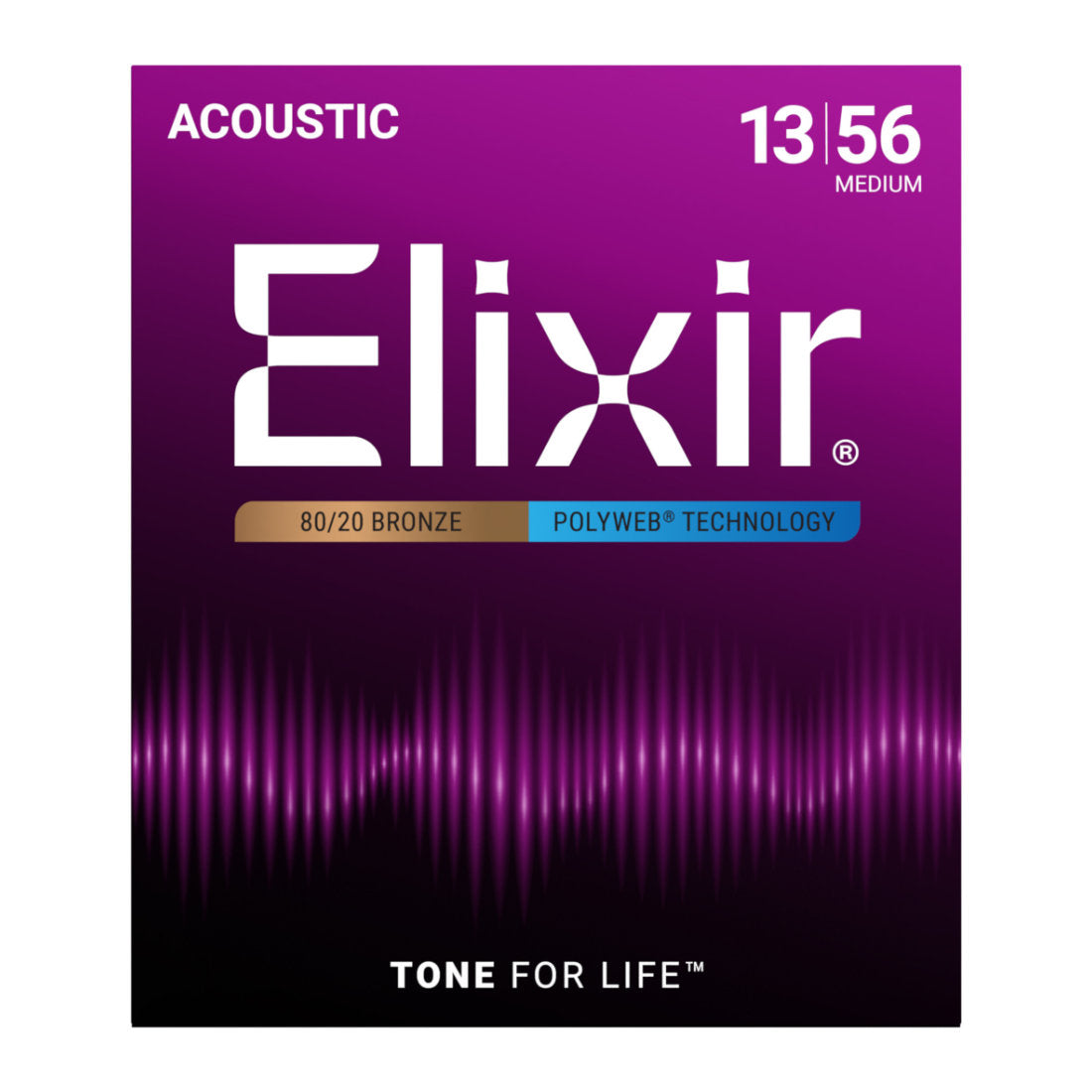 Elixir 11100 Acoustic Guitar Strings 80/20 Bronze w/ Polyweb Coating - Medium 13-56