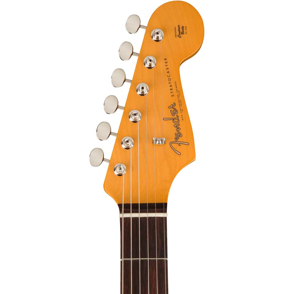 During the late ‘50s and early ‘60s, the popularity of Fender musical instruments flourished, and although the Fender assortment had expanded to include many great new instruments, the Stratocaster® reigned supreme. By 1961, the Stratocaster had taken on a more refined aesthetic, with a 3-Color Sunburst reformulated with a more vibrant red and bolder black edge, topped with a 3-ply pickguard accenting the Strat’s signature curves.