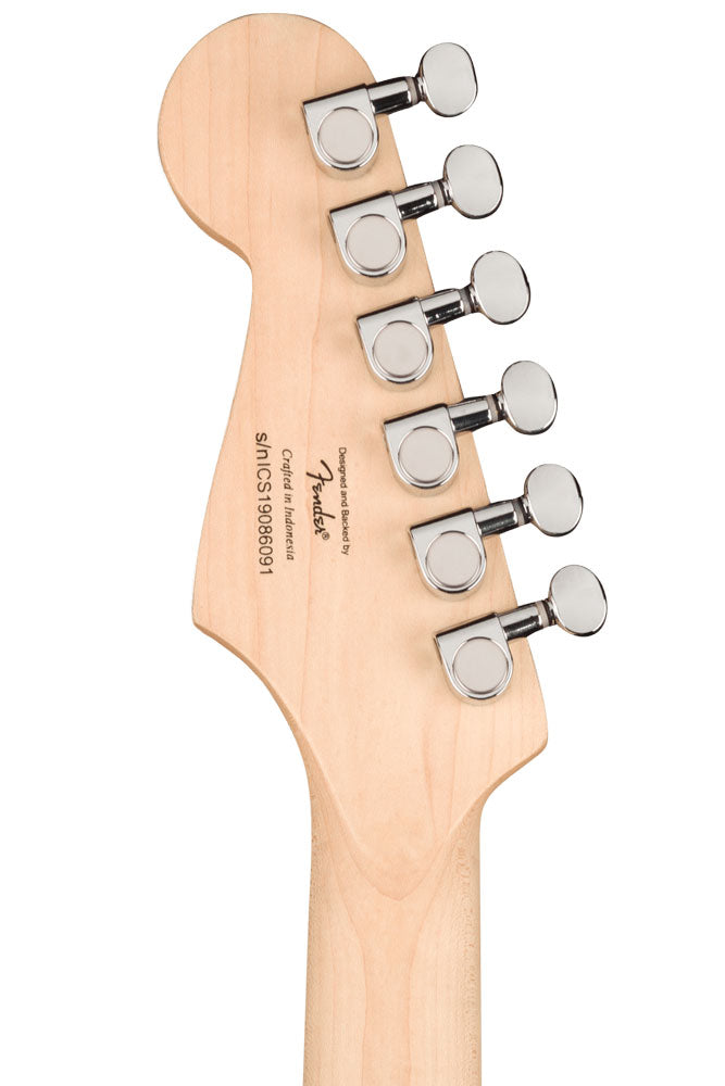 The Squier Mini Stratocaster® is the perfect companion for players seeking a reduced-size instrument with classic styling and familiar Fender® tone. Highlights include a thin and lightweight body, an easy-to-play “C”-shaped neck profile, a trio of Squier single-coil pickups with 5-way switching for sonic variety, and a hardtail bridge for solid tuning stability.