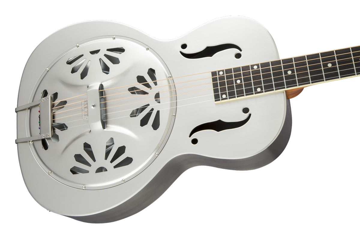 Incorporating a special combination of an all-steel body with their renowned Gretsch Ampli-Sonic™ "Spider" cone diaphragm spun from 99 percent pure aluminum, the Bobtail Steel offers a new tonal signature for your musical creations. Other features include a round mahogany neck, rosewood fingerboard, Grover® Sta-Tite™ machine heads and Fishman® Nashville pickup. Optional G2180 Resonator Gig Bag (#996-481-000).