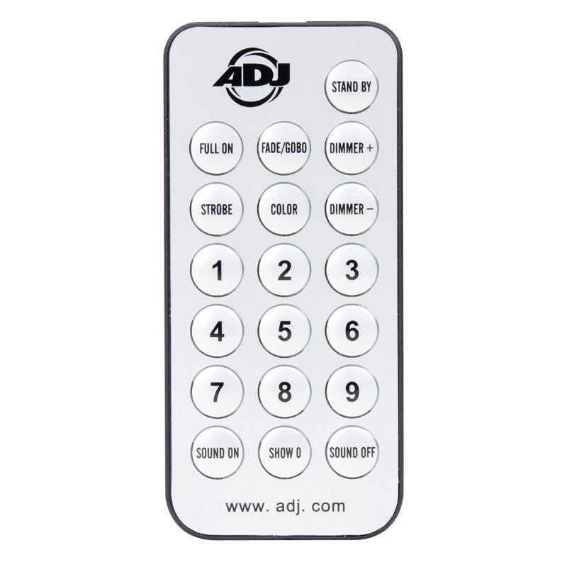 Universal infrared remote control for a variety of ADJ lighting fixtures.
