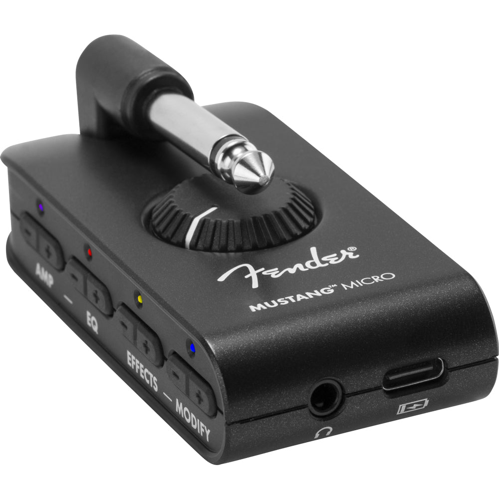Mustang Micro is a complete personal guitar amplifier featuring a wide selection of tones from the wildly popular Mustang series amps. Plug Mustang Micro directly into your guitar, connect a pair of headphones, and choose your amp and effects. It’s ideal for any player from beginner to pro, making it quick and easy to get great tones when jamming silently at home or on the go. And you can play along to your favorite tracks or instructional videos using the built-in Bluetooth audio connection.