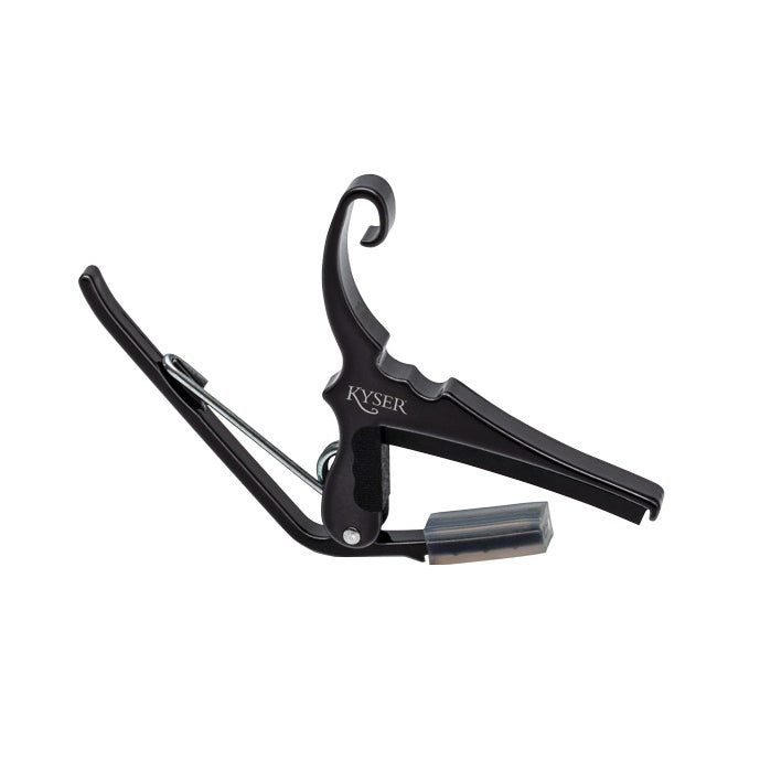 A Kyser® Quick-Change® is expertly engineered and built to last. It is reliable and does just what it is designed to do — clearly raise the pitch of the guitar so you can play in a different key without retuning or changing fingering. Seasoned professionals and beginning players alike appreciate how the Kyser® Quick-Change® helps them transpose their guitar in seconds, with only one hand. The beauty of the Kyser® Quick-Change® is in its simplicity. They pioneered this design and although often imitated, a Kyser® is never equaled. There is no substitute for a Kyser® Quick-Change®.