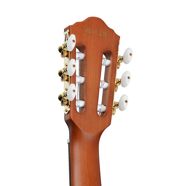 - Walnut bridge: The Walnut bridge transfers string vibration directly to the body, delivering a natural and warm tone.