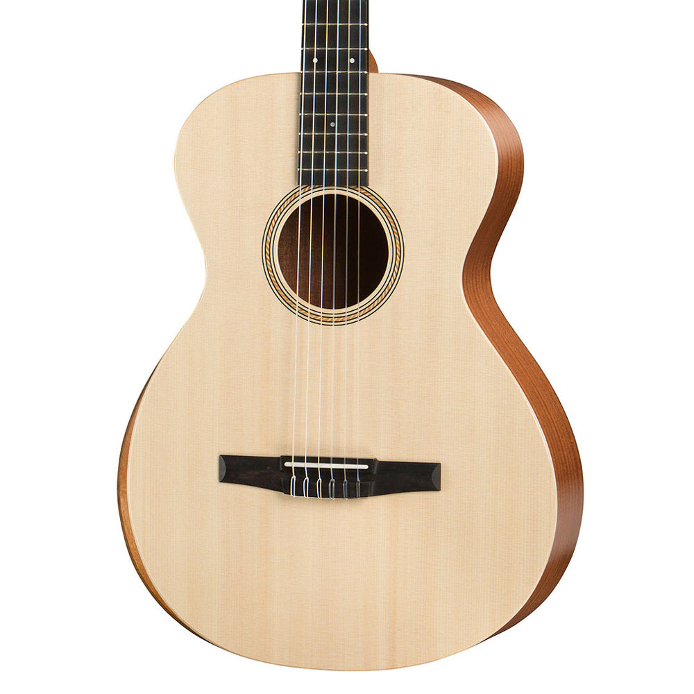 Ideal both for beginner players or experienced guitarists seeking an affordable nylon-string guitar to add to the toolkit, the Academy 12-N generates a rich, snappy acoustic tone with the classical-hued flavor that only comes with nylon strings. It's made with a solid torrefied spruce top for power, projection and articulation, with Taylor's special roasting process adding a dash mature, aged-in warmth. This compact Grand Concert model offers a seamless feel thanks to its player-friendly dimensions, built-in armrest and slender Taylor neck, which features a 1-7/8" nut width that provides ample spacing for fingerstyle arrangements but maintains a relaxed feel for fretting. The acoustic-only Academy 12-N ships with a soft-sided gig bag for transportation.