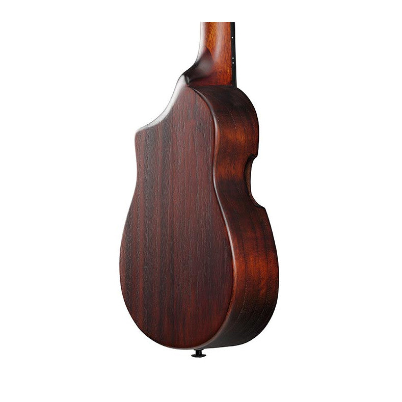 The AU series features very unique construction. Rather than being built with a separate top, sides, and back like most ukuleles, the body of the AU starts as a solid block of wood and is routed out, so that the back and sides are a single piece of wood. A top is then added to complete the body. This construction method gives these instruments a unique sound and brilliant playability. They also utilize distinctive features such as a Stereo Sound Port, Elevated Comfort Armrest, and Edgeless Comfort Heel.