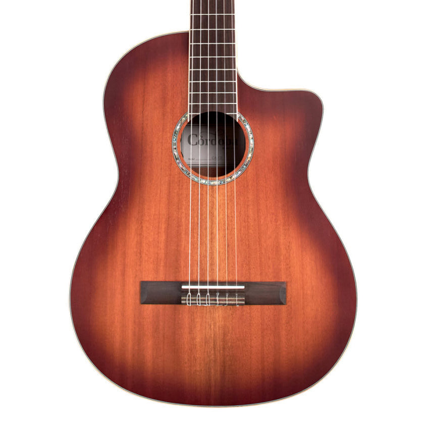 The C4-CE's solid African Mahogany top provides a crisp, articulate tone, combined with African mahogany back and sides for balanced volume and sustain. The construction is based upon Cordoba's traditional Spanish classical guitar, with the inclusion of a soft cutaway and a slightly thinner 50mm-width neck designed for comfortable playability and easy upper-register reach. Premium design elements such as a Maple binding, Abalone rosette, and a striking Edgeburst finish will help you stand out from the crowd. The Fishman Presys VT Pickup System produces a rich and natural sound when amplified, and puts the soundhole mounted controls at your fingertips - perfect for gigging and recording.