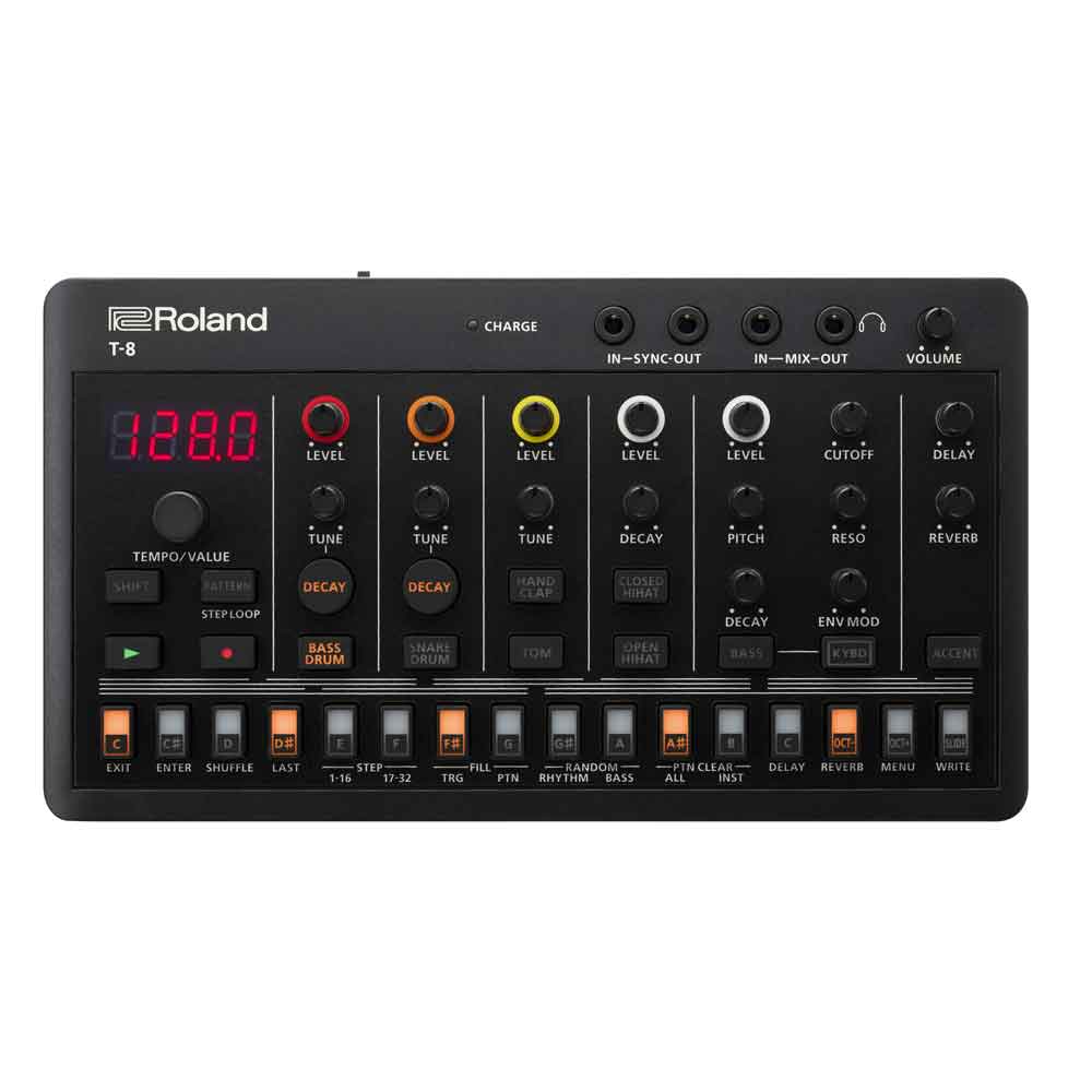 Build beats with the boom, pop, and sizzle of sounds from the TR-808, TR-909, and TR-606 drum machines, paired with the shapeshifting low end of the dynamic TB-303 Bass Line. The T-8 exudes classic Roland character, thanks to the same Analog Circuit Behavior (ACB) tech found in the TR-8S, TB-3, and other high-end AIRA gear.