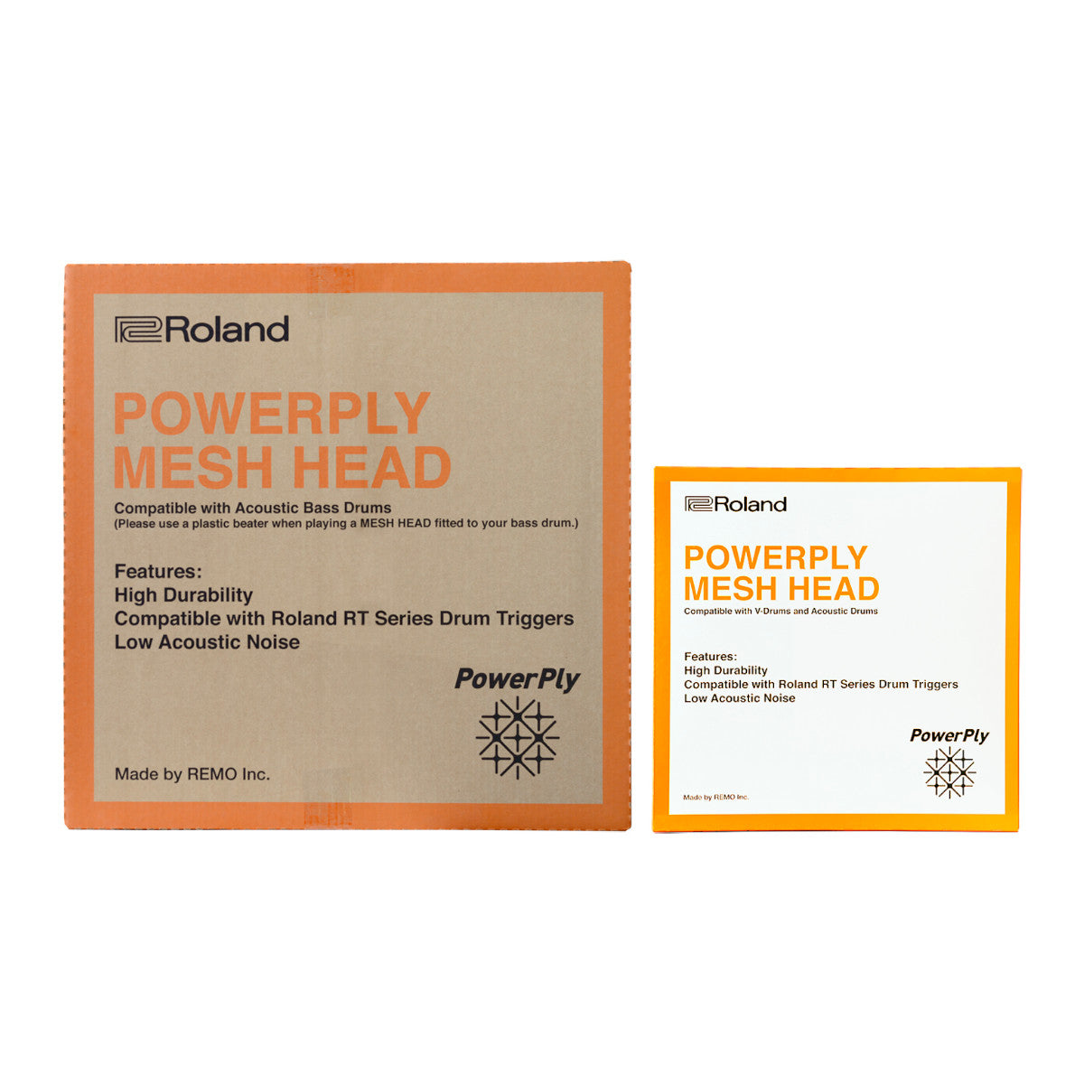 Roland’s dual-ply mesh heads for V-Drums revolutionized the playability of electronic drums thanks to their adjustable tension, durability and natural playing feel. And now Roland is taking the concept a step further with the PowerPly series; nine mesh heads produced by REMO Inc. ranging from 8” to 22” that let you retrofit your acoustic drums for quiet practice. When used with Roland’s RT-30 Acoustic Drum Triggers, PowerPly mesh heads can trigger a V-Drums module, enabling you to practice and experiment with various sounds while maintaining the looks and feel of your acoustic drum kit.