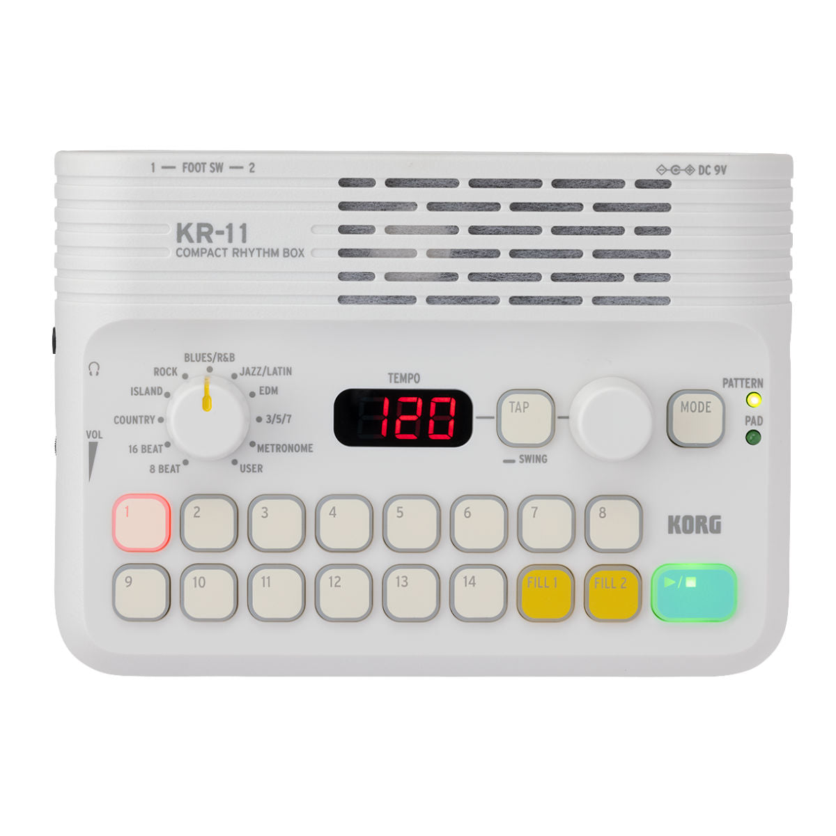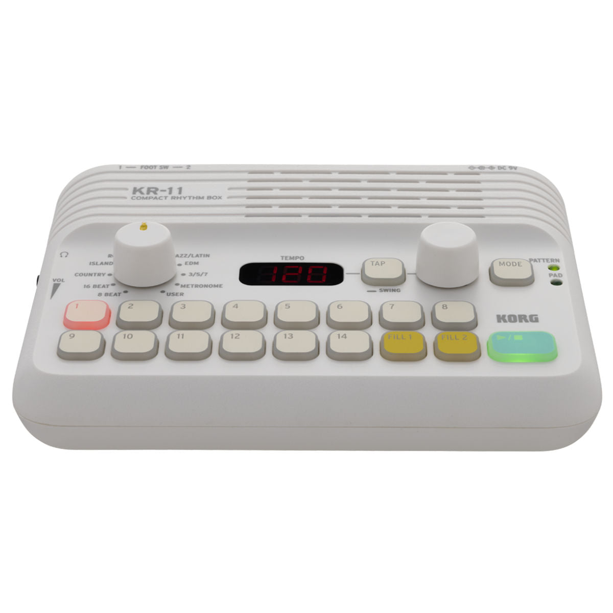 The new KR-11 is a compact yet feature-packed rhythm machine, which offers a portable solution to bring variety and fun to your music practice. The KR-11 compact rhythm box brings the rhythm machine legacy into the modern era, pioneered by the legendary Korg Doncamatic in 1963.