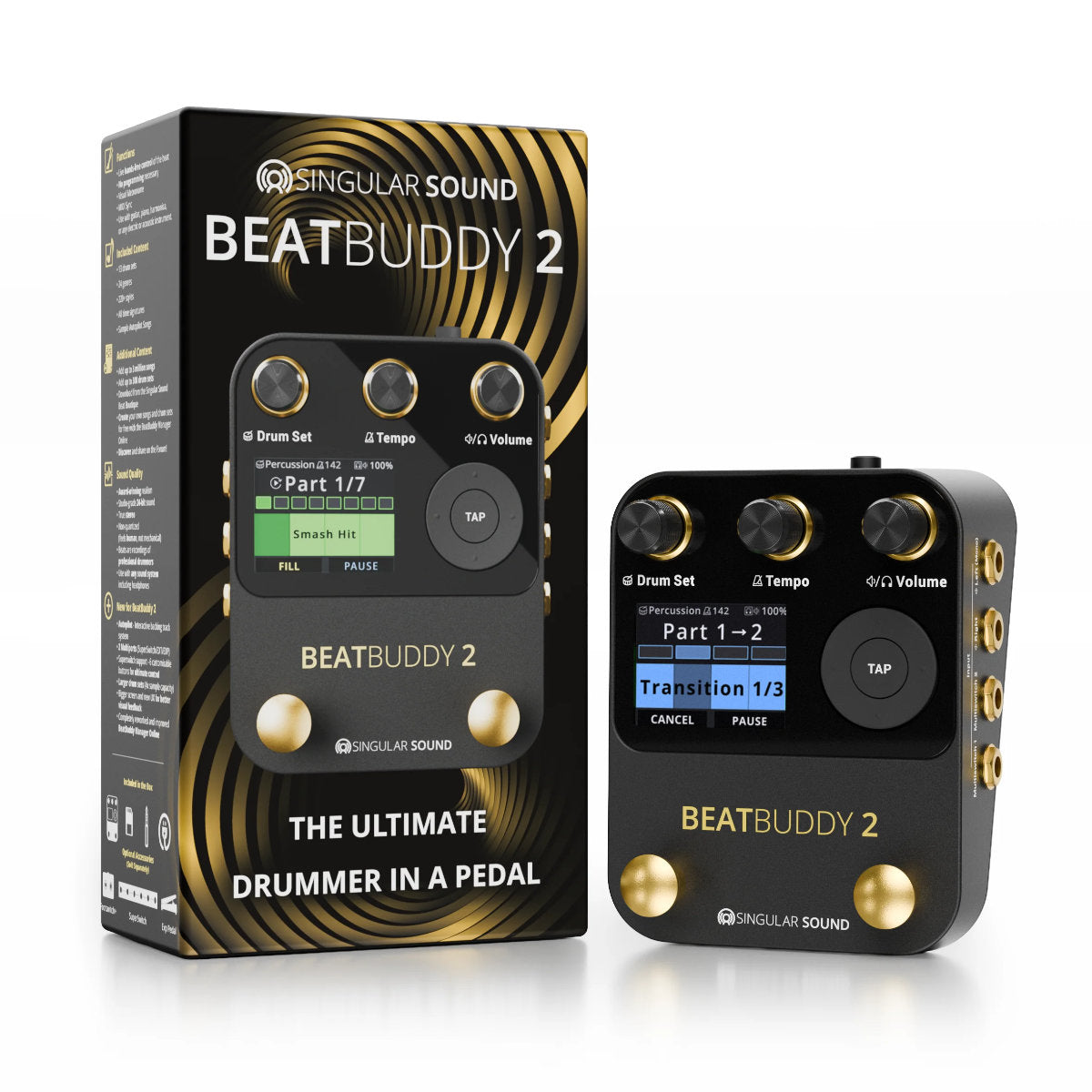 BeatBuddy is the award-winning pedal for musicians to add live, responsive drums to their playing. More than 150,000 players around the world use it to practice, write, and perform with a drummer that never misses a cue. With a simple foot tap, you can add fills, transitions, song part changes, drum breaks, accent hits, intros/outros, double/half time, cowbell, and more — all in real time. You can even navigate set lists hands-free.