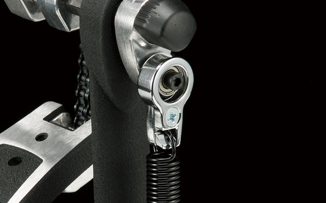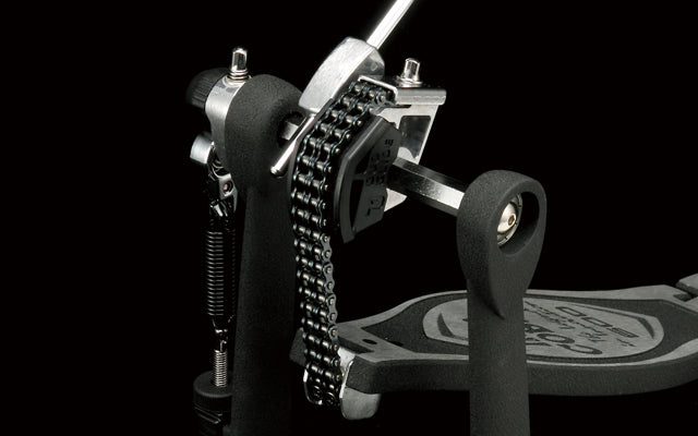 The newest addition to the Iron Cobra series, the Iron Cobra 600's most unique feature is a reversible cam called the "Duo Glide Cam." A simple adjustment allows fast changes between a true round "Rolling Glide" sprocket and an offset "Power Glide" sprocket. Drummers can choose the appropriate cam based on playing style, musical environment, and personal preference. In addition, the Iron Cobra 600 features a newly designed hinge for precise footboard action, and ball bearing equipped "Speedo-Ring" rocker cam.