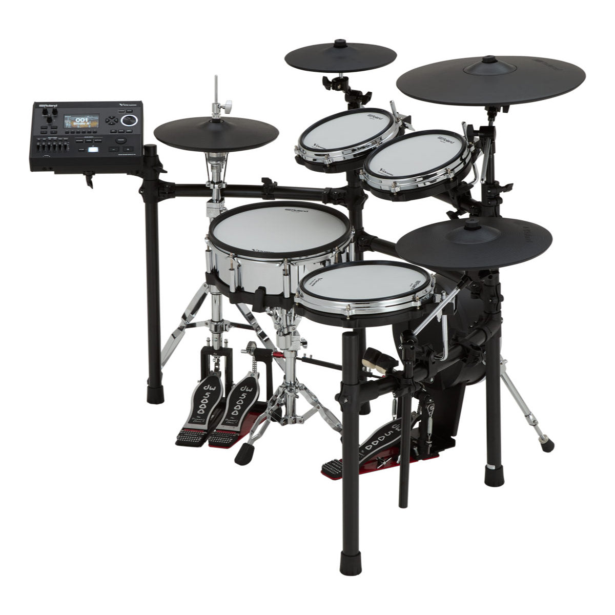 - Five-piece kit with Roland's advanced digital snare, ride, and hi-hat ride pads