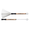 This retractable wire brush features a wood handle for a natural feel in the hand and for added sound color when played on the cymbals. The distinctive handle transitions to the wires with a rubber cover that assures a pleasing tone when played up against the rim. Medium gauge wire produces great sound and rebound, while the pull rod mechanism allows for an infinitely adjustable brush spread capable of maintaining any playing position. This lets the player completely fan out the wires for a full sounding stroke, or retract them as desired to create a more articulate sound.
