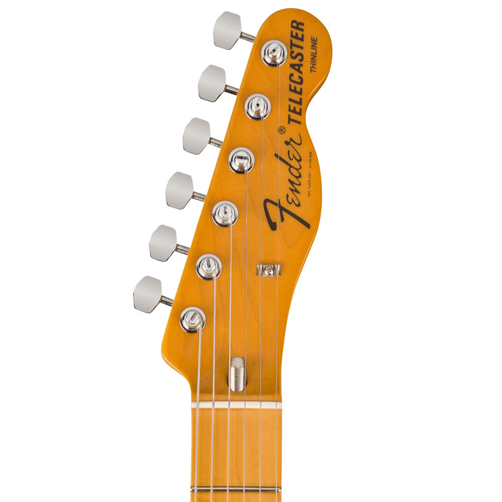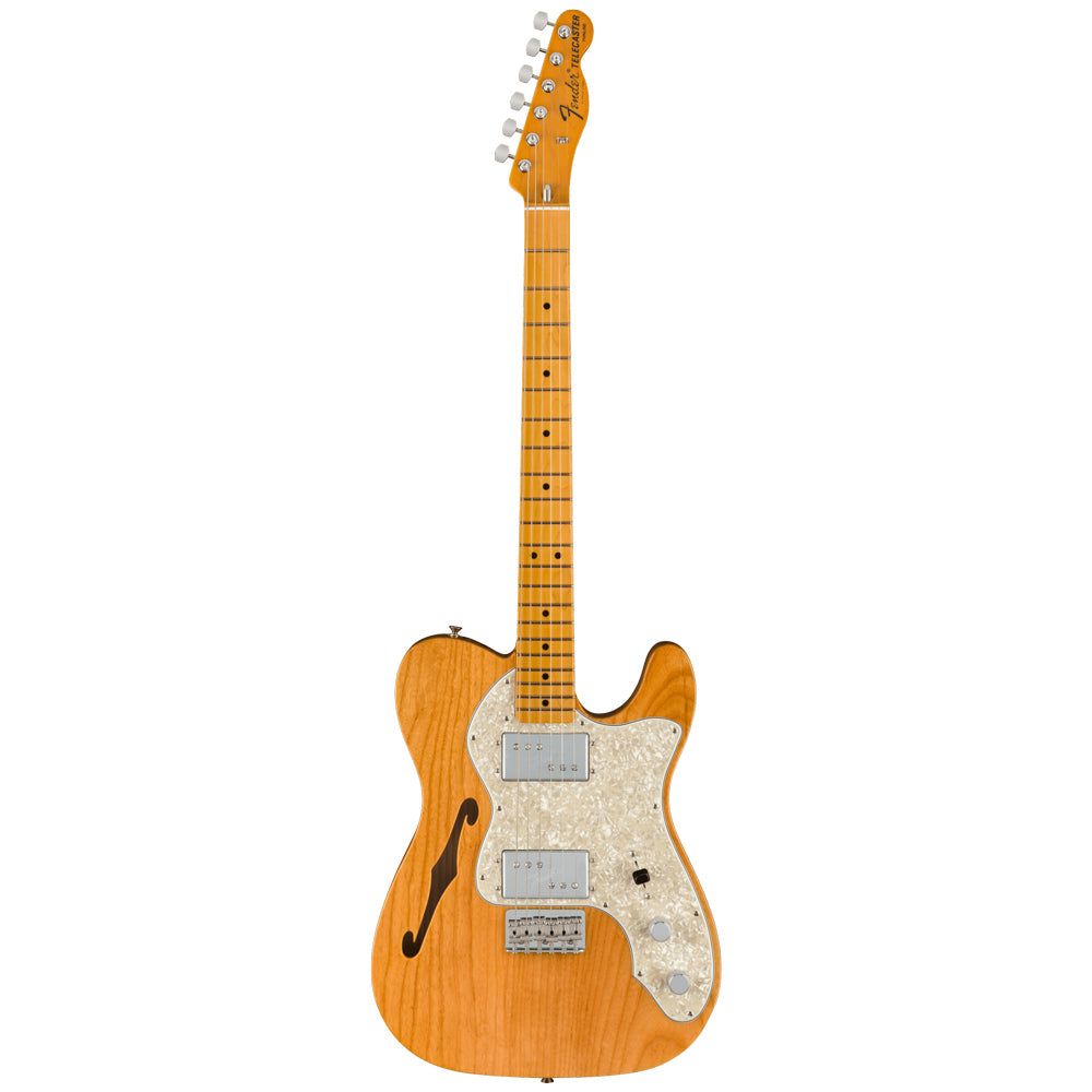 Featuring a “C”-shape hard rock maple neck, the American Vintage II 1972 Telecaster® Thinline plays like a dream with a 7.25” radius fingerboard and vintage tall frets. To create authentic Wide-Range humbucking pickups, we resurrected CuNiFe magnets, an essential element in recreating the sonics of the originals. Characteristic of production in 1972, this Thinline is outfitted with a convenient "Bullet" style truss rod nut, three-bolt neck plate with Micro-Tilt™ mechanism, “F” stamped tuners, 6-saddle string-through body hardtail with bent steel saddles and offered with an Aged Natural finish over a semi-hollow ash body.