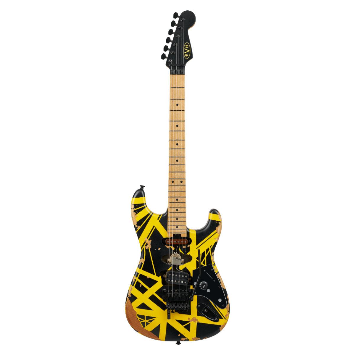 - Graphite-reinforced bolt-on quartersawn maple neck and licensed Fender® Strat black headstock with yellow EVH decal