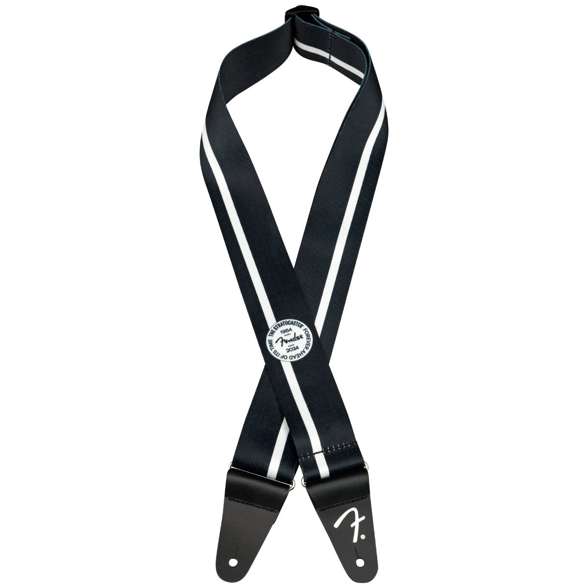 Celebrate the 70th Anniversary of the beloved Strat® with the 70th Anniversary Polyester Strap. Adorned with the Anniversary Logo, this printed polyester strap includes a retro striped design and leather ends for ultimate comfort and playability.