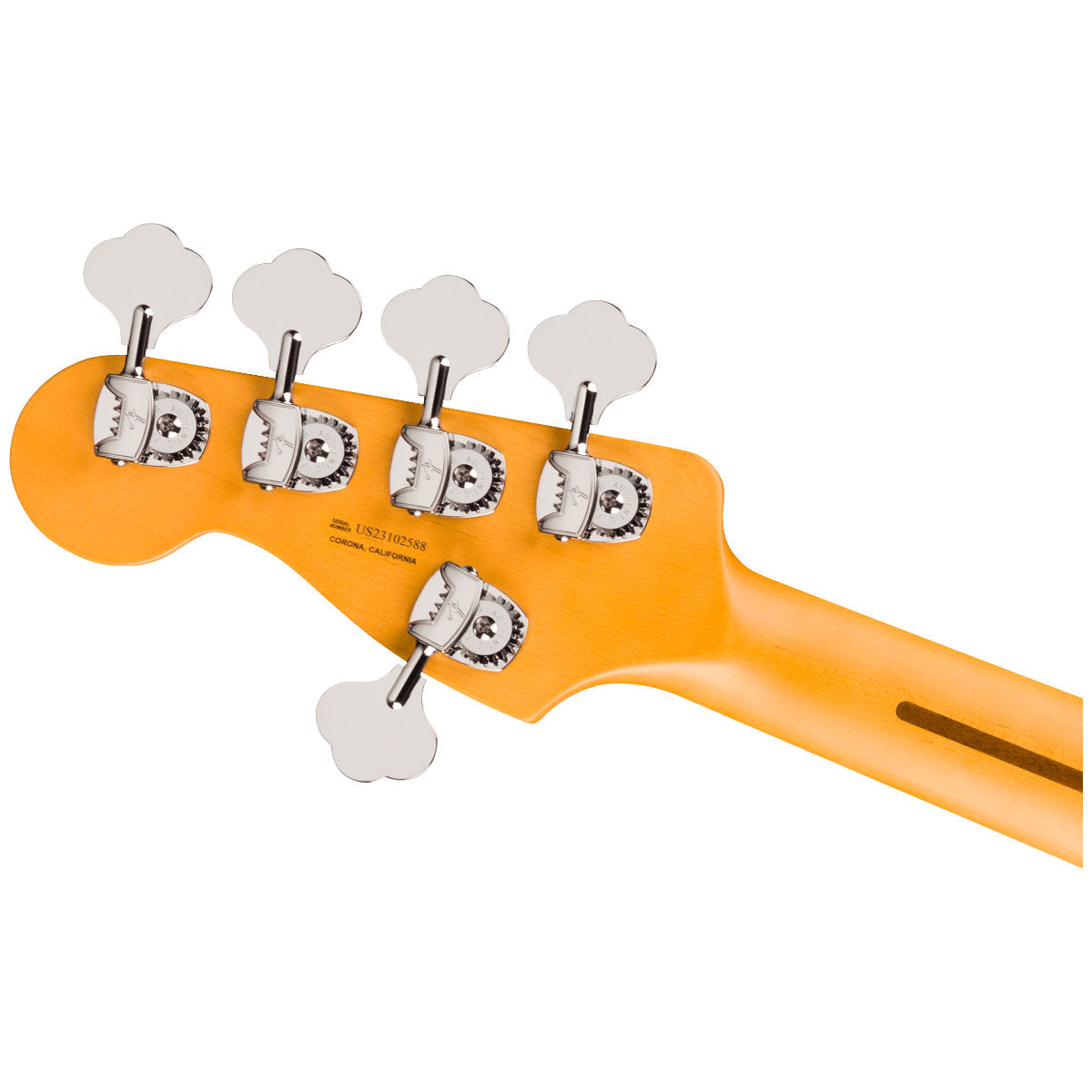 The Fender® American Ultra II Jazz Bass® V features a select alder body with sculpted body contours. For effortless playability, the quartersawn maple neck features Fender's Modern D profile and smooth Ultra Satin finish. Ebony or quartersawn maple 10”-14” compound radius fingerboards feature Ultra rolled edges, medium-jumbo frets, Luminlay® side dots and Graph Tech® TUSQ® nuts. The tapered neck heel and sculpted body contours allow unparalleled access to the higher register, while the truss rod access at the headstock provides convenient and easy setup and adjustment.