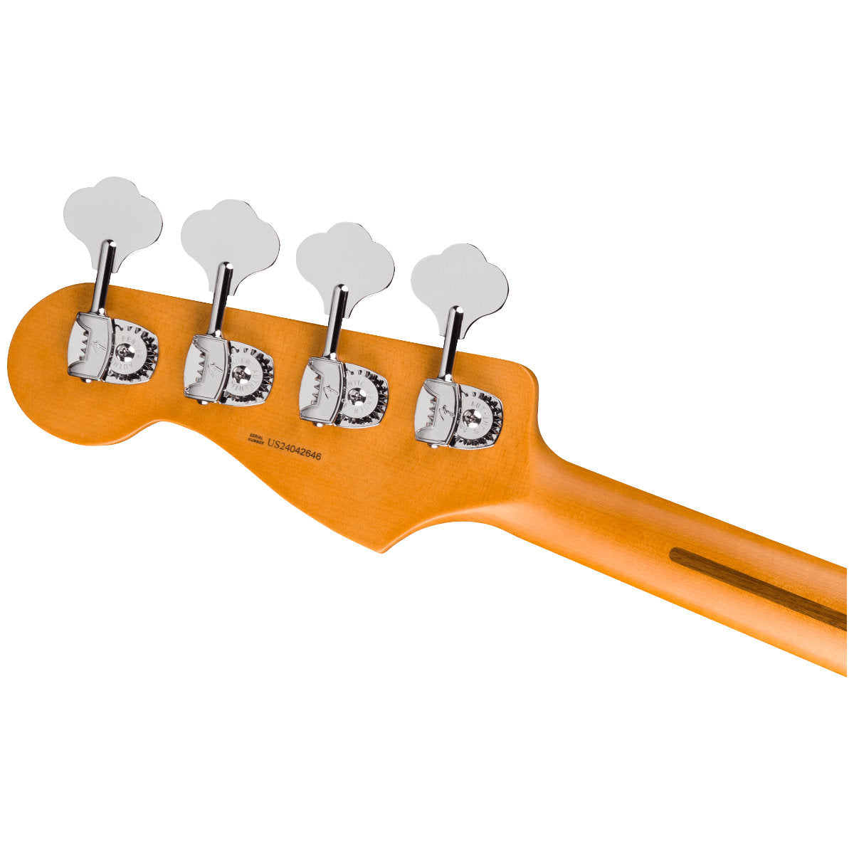 The Fender® American Ultra II Meteora® Bass features a select alder body with sculpted body contours. For effortless playability, the quartersawn maple neck features Fender's Modern D profile and smooth Ultra Satin finish. Ebony or quartersawn maple 10”-14” compound radius fingerboards feature Ultra rolled edges, medium-jumbo frets, Luminlay® side dots and Graph Tech® TUSQ® nuts. The tapered neck heel and sculpted body contours allow unparalleled access to the higher register, while the truss rod access at the headstock provides convenient and easy setup and adjustment.