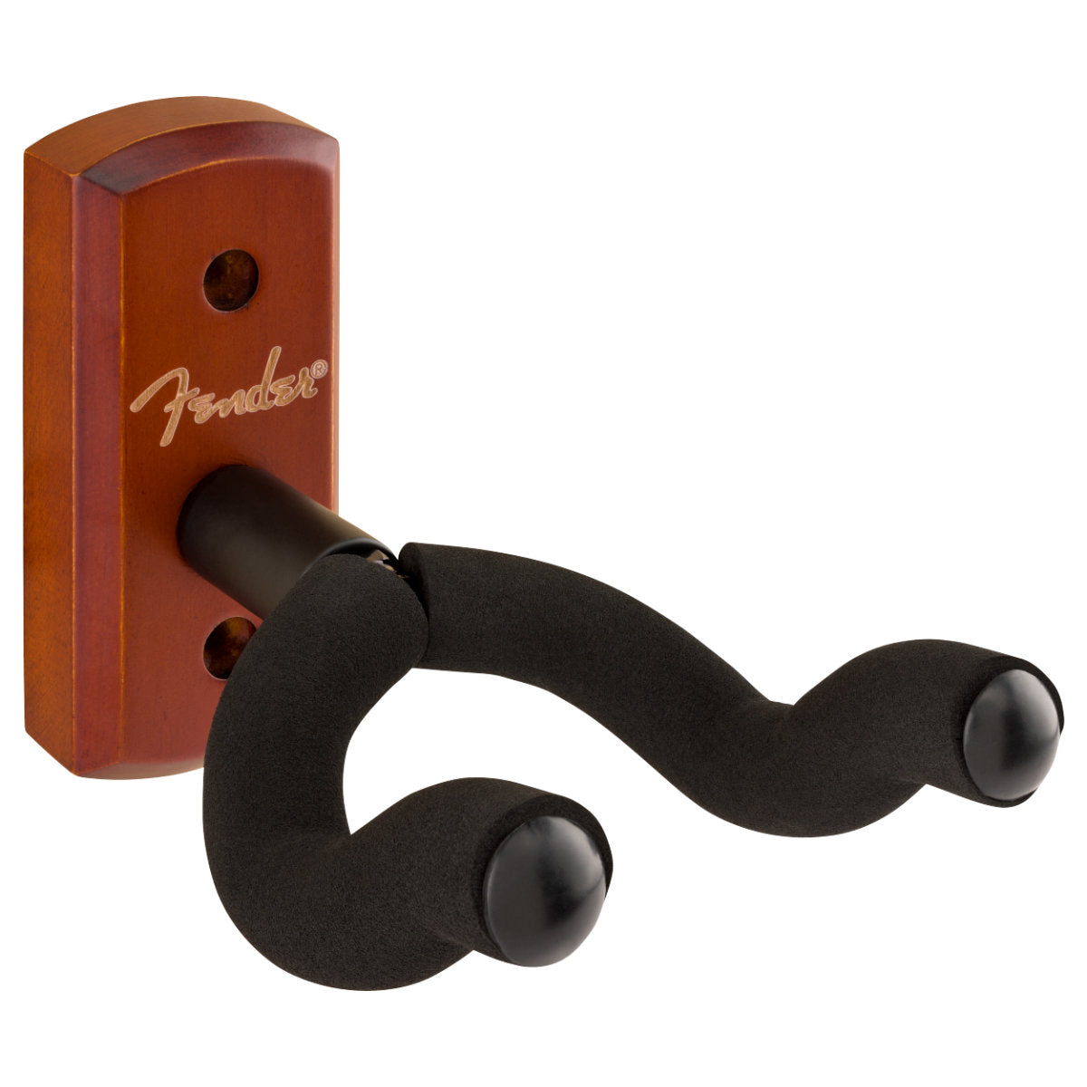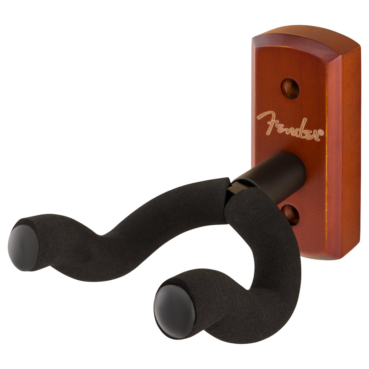 Display your prized guitar in style with the new Fender Essentials Guitar Wall Hanger. Built from durable hardwood with a reinforced steel yoke, it offers a secure hold, while the pivoting EVA foam-padded yoke adjusts to fit most headstock shapes for a straight hang. Complete with a laser-engraved Fender logo and mounting hardware included, the Essentials Wall Hanger keeps your go-to guitar ready to play while adding a subtle touch of Fender flair to your space.