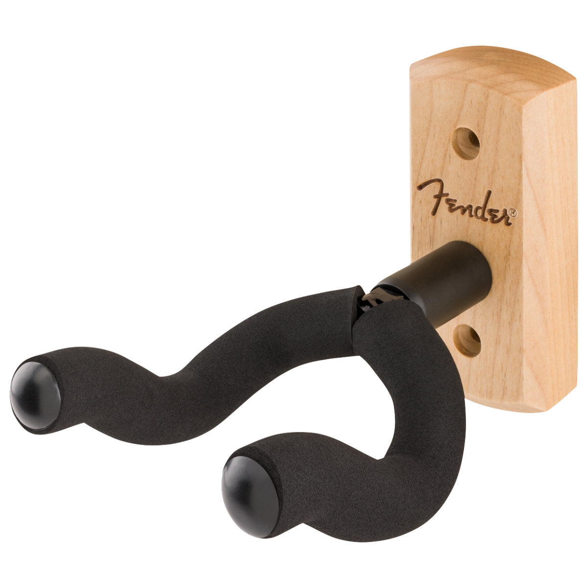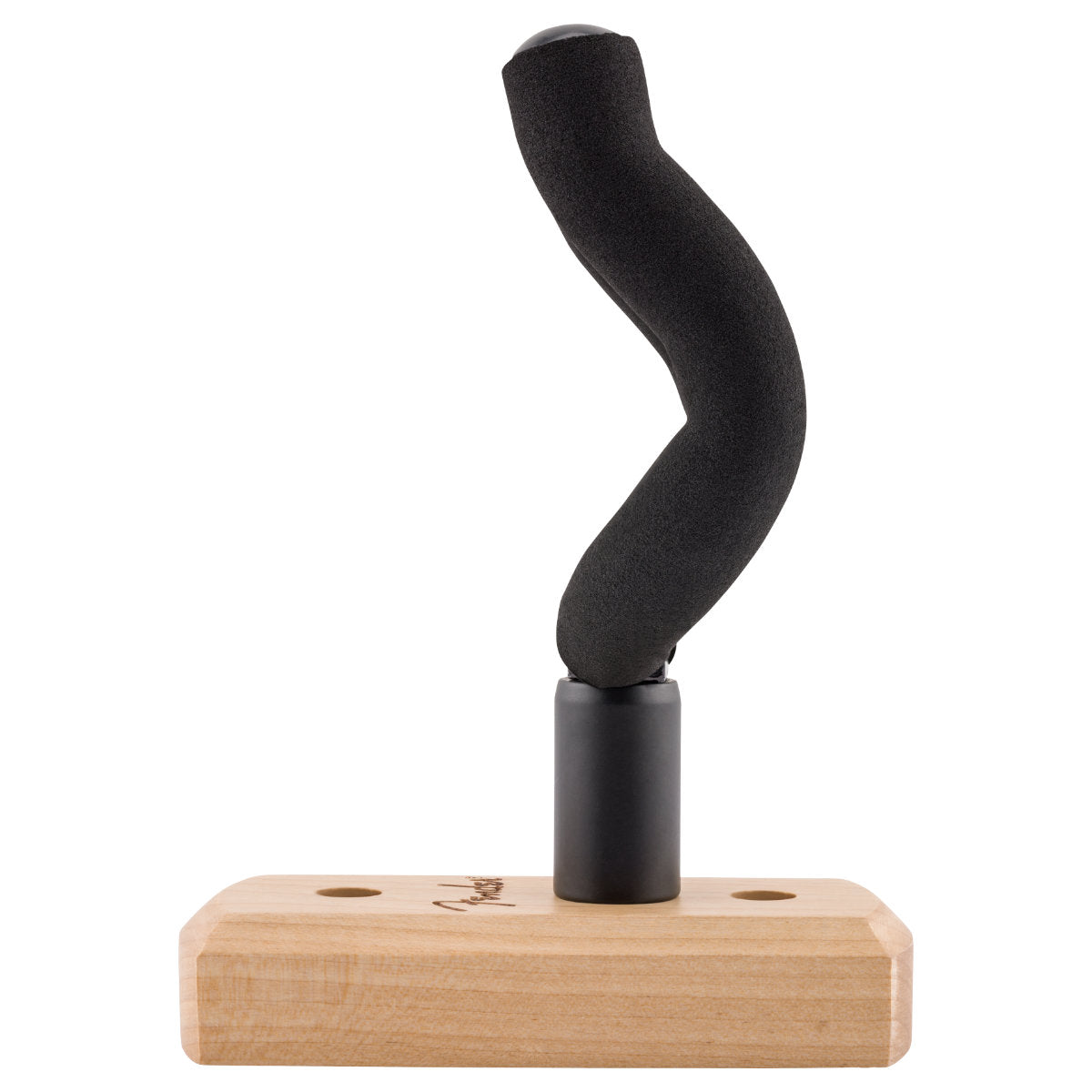 Display your prized guitar in style with the new Fender Essentials Guitar Wall Hanger. Built from durable hardwood with a reinforced steel yoke, it offers a secure hold, while the pivoting EVA foam-padded yoke adjusts to fit most headstock shapes for a straight hang. Complete with a laser-engraved Fender logo and mounting hardware included, the Essentials Wall Hanger keeps your go-to guitar ready to play while adding a subtle touch of Fender flair to your space.