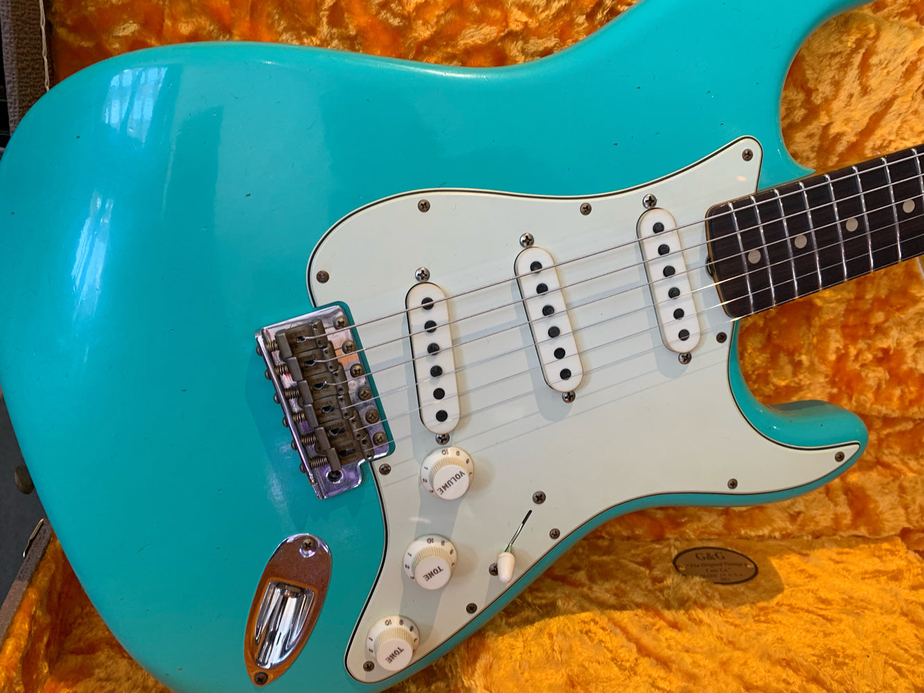 Featuring a 62 body and 63 neck, mint green pickguard, dark blood rosewood fingerboard, hand wound Josephina 60/63 pickups, aged hardware and a more modern 7.25"-9.5" radius for great ringing open chords and plenty of upper fret bending without fretting out.
