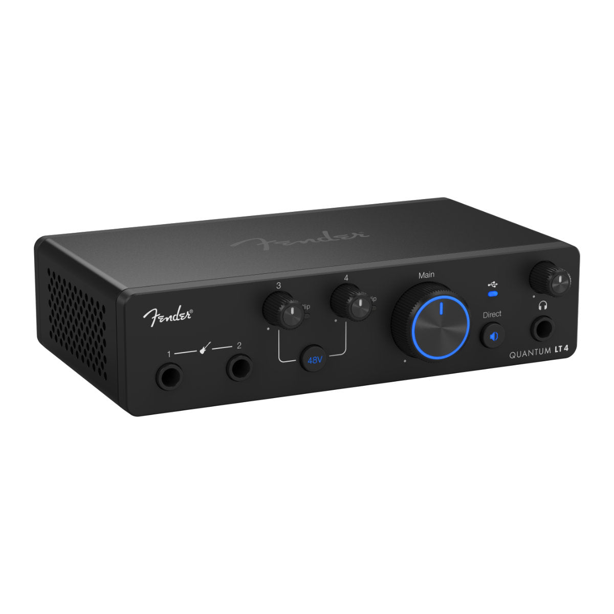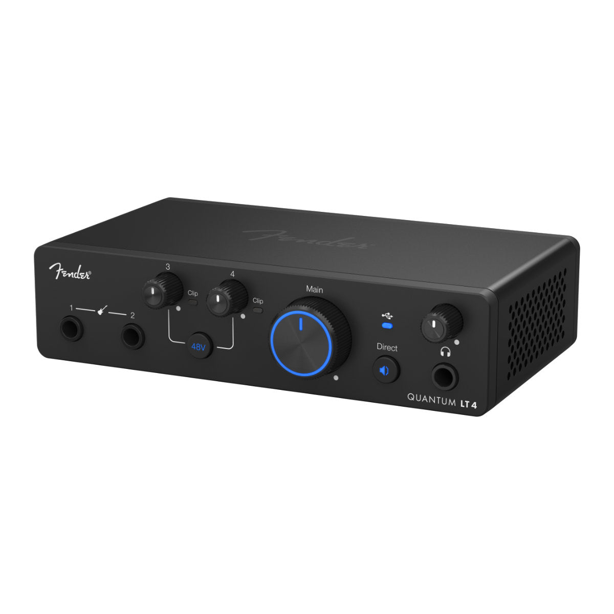 Fender Quantum LT 4 provides expanded I/O and versatile connectivity with two transparent MAX-HD mic preamps, Fender instrument inputs, loopback for streaming, and class-leading low-latency performance — ideal for small ensembles, content creators, and growing studios.