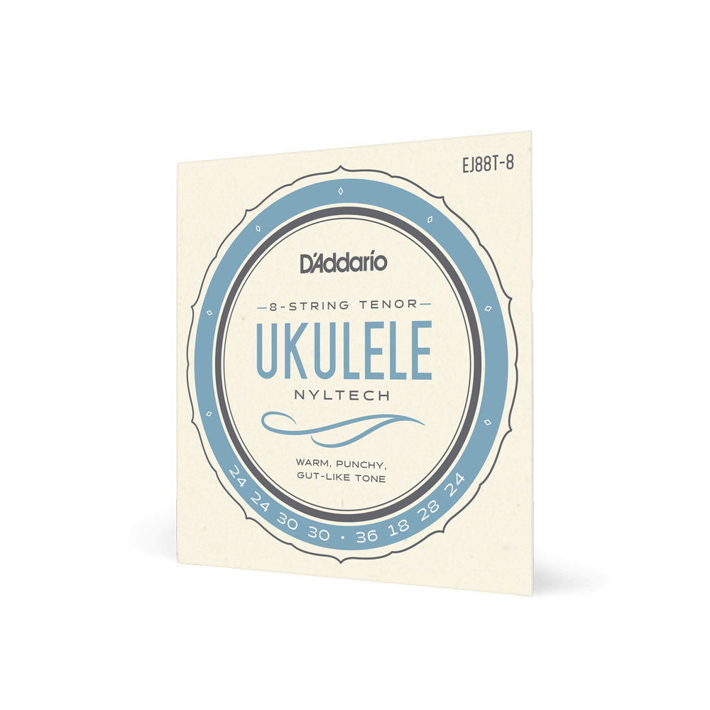EJ88T-8 is a string set for 8-string tenor ukulele, optimized for GCEA tuning. Nyltech strings utilize a proprietary formulation that produces the optimal combination of warm yet punchy tone, emulating the tonal characteristics of natural gut strings.