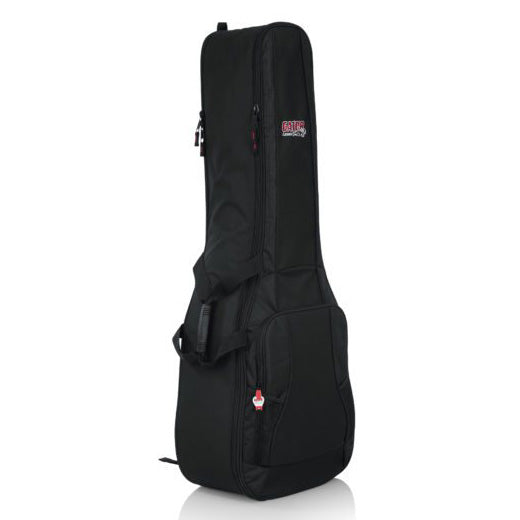 The Gator GB-4G-ACOUELEC Gig Bag is built to hold one acoustic and one electric guitar. The Nylon bag sports 360 degrees of GFLEX 20mm padding with additional padding at the bottom. A reinforced headstock and bridge area prevent wear and extend the life of the bag.