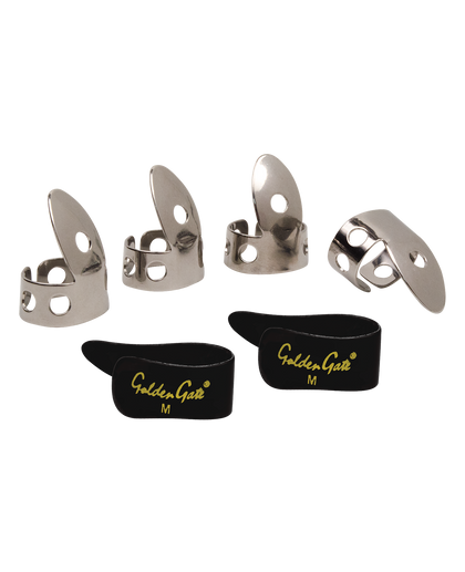 When you order metal finger picks, choose “Golden Gate!” There is no greater brand recognition in the world and there is no higher quality pick being made today. Golden Gate picks are correctly styled and shaped and have the durability to last a lifetime. Choose the name the whole world knows – the finest made – Golden Gate!