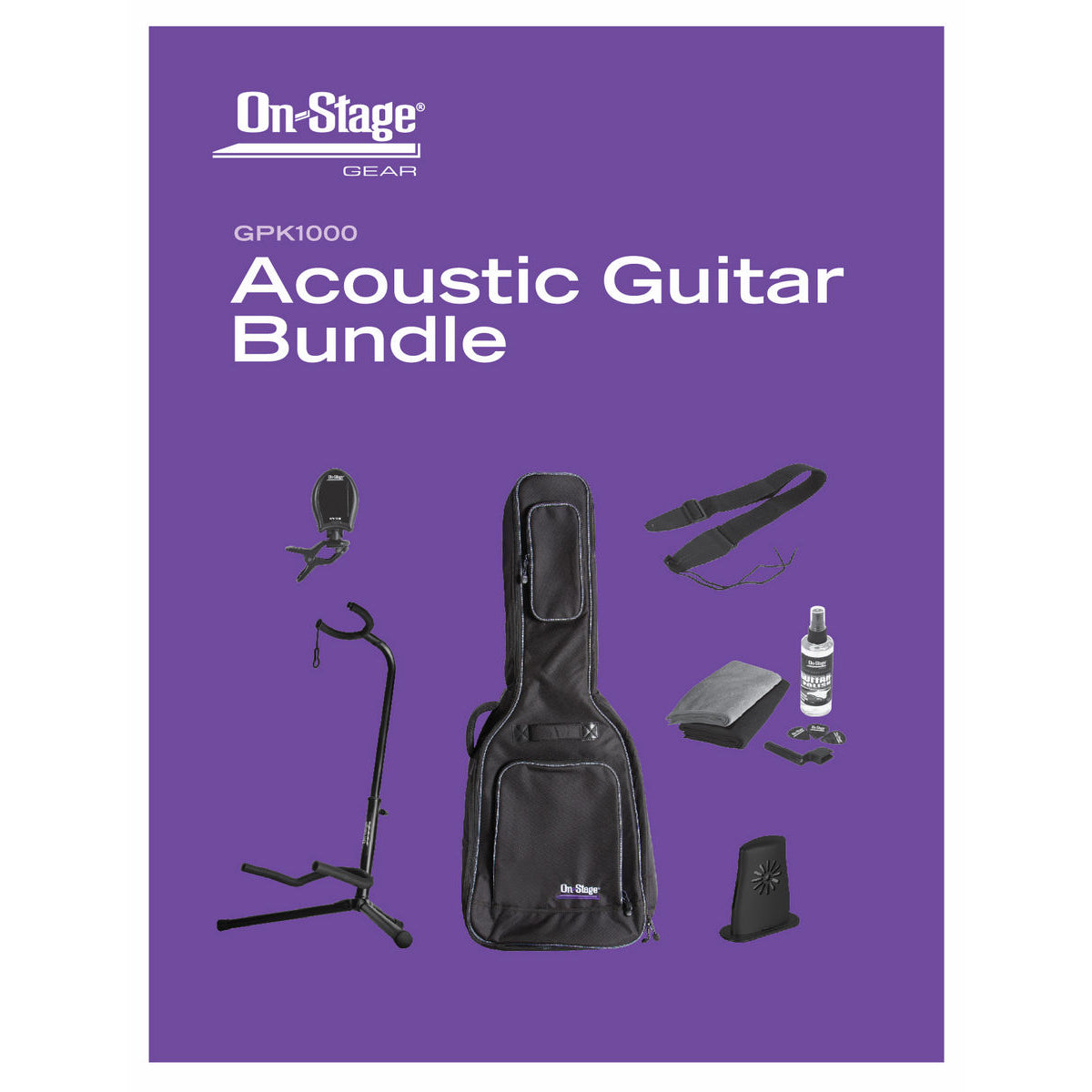 Designed exclusively for Bananas At Large, the GPK1000 Acoustic Guitar Bundle assembles our best-selling guitar accessories into a single package. With this bundle of essential gear for the budding guitar player, you can streamline your purchasing process by buying a convenient all-in-one accessories solution. You can protect your instrument with the XCG-4 Classic Guitar Stand and GBA4770 Deluxe Acoustic Guitar Bag. You'll stay in tune with the GTA4000 Clip-On Chromatic Tuner. Your instrument will be properly maintained with the GK7000 Universal Guitar Care Kit and GA150 Guitar Humidifier. And the GSA10BK Guitar Strap will provide comfortable playing.