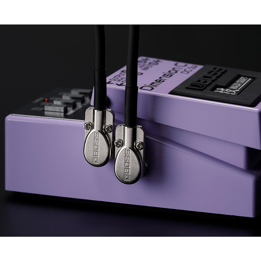 Combining high-quality audio performance with a unique space-saving design, BOSS BPC patch cables help maximize real estate in any pedal setup. Their custom-designed slimline pancake plugs fit on pedals and switchers with tight jack spacing, and feature 24K gold-plated contacts for corrosion-free operation. The oxygen-free copper center conductor keeps your tone intact, while heavy-duty braided copper shielding blocks noise and enhances durability.