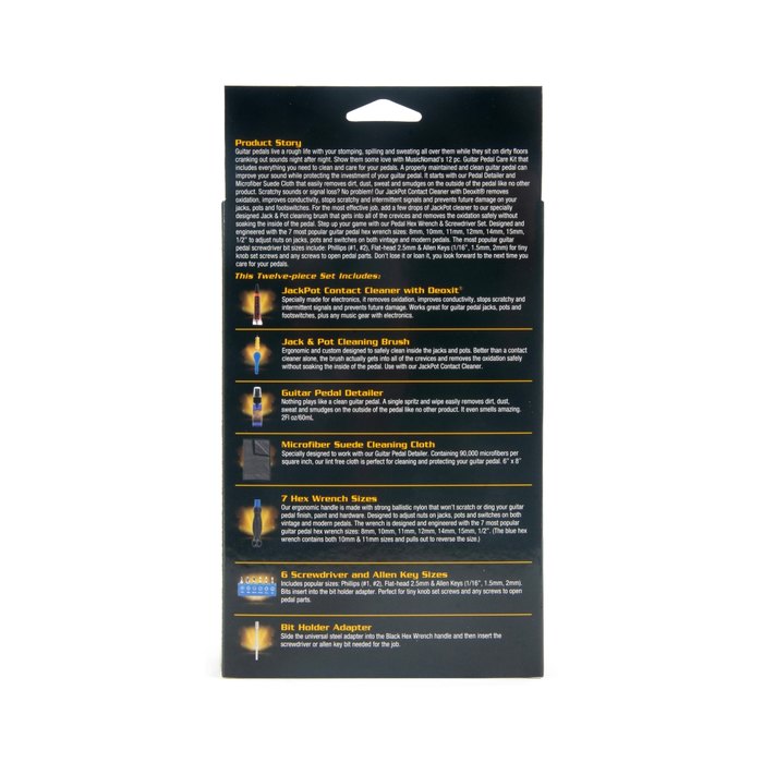 Guitar pedals live a rough life! Show them some love with MusicNomad's 12 pc. Guitar Pedal Care Kit that includes everything you need to clean and care for your pedals. A properly maintained and clean guitar pedal can improve your sound while protecting the investment of your guitar pedal.