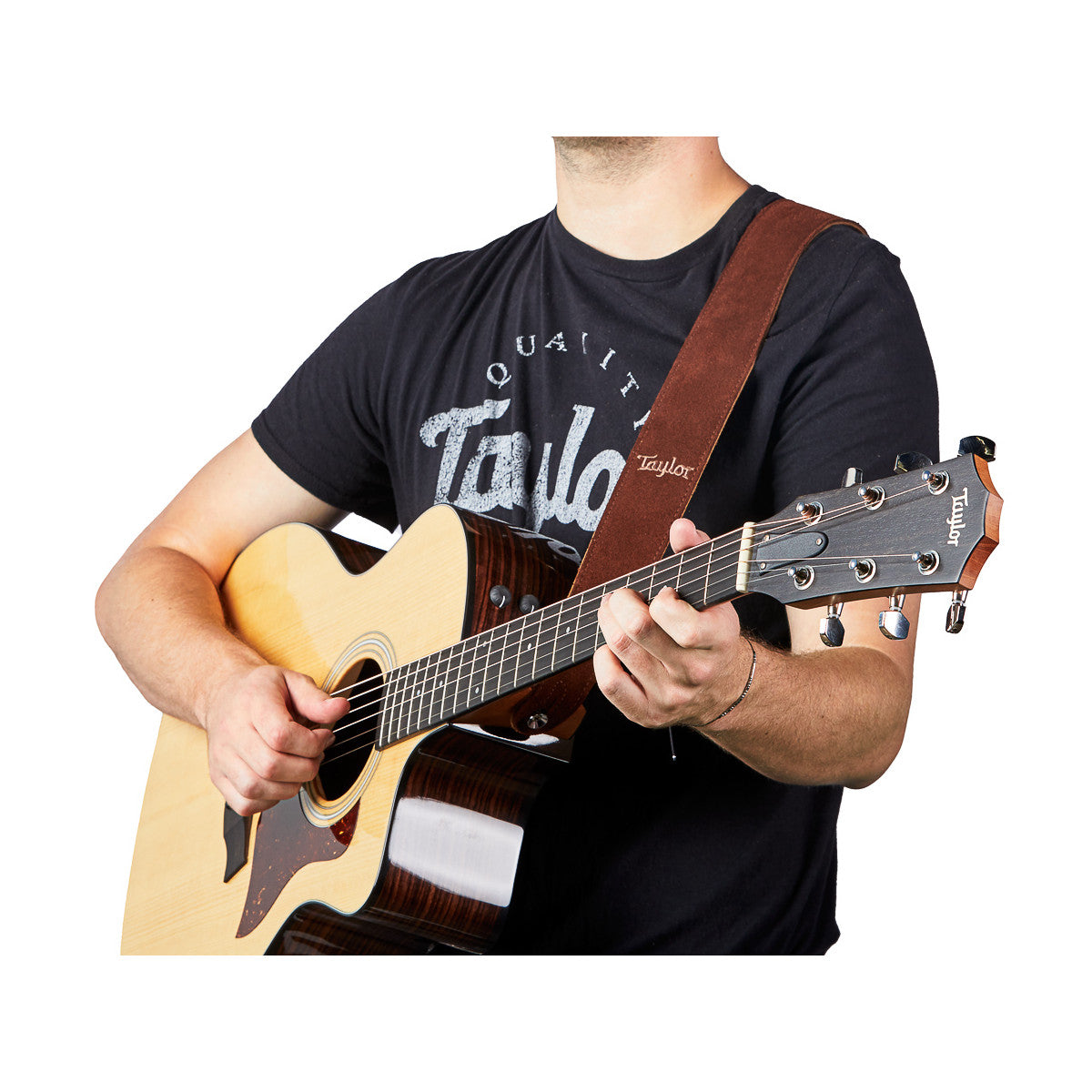 The Taylor Embroidered Suede Guitar Strap bears a beautifully straightforward look. Aside from the embossed Taylor logo, this strap features no ornamentation, allowing Taylor high-quality suede to speak for itself. Available in Black, Chocolate Brown and Honey Gold, this 2.5"-wide guitar strap provides the perfect balance of comfort and support. Made in Canada. Taylor Model: #4400-25 (Chocolate Brown).