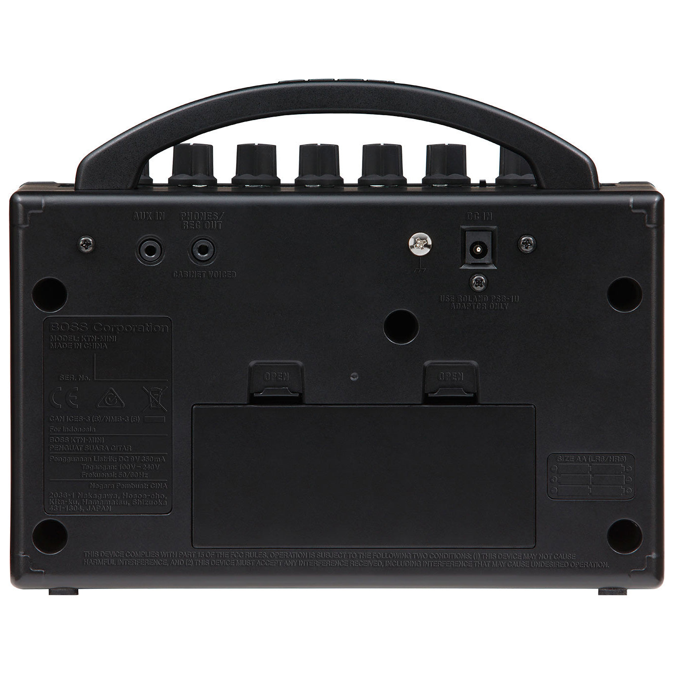 Unlike typical small, battery-powered guitar amps that offer so-so sound quality, the Katana-Mini produces big, full tone that inspires you to plug in and play for hours at a time. BOSS’s comprehensive design approach includes a custom speaker, advanced hardware, refined circuitry, and special component selection, which all work together to produce maximum sound quality in a minimum footprint. The amp also incorporates BOSS’s decades of research in energy efficient design, providing class-defying power and punch from only six AA-size batteries.