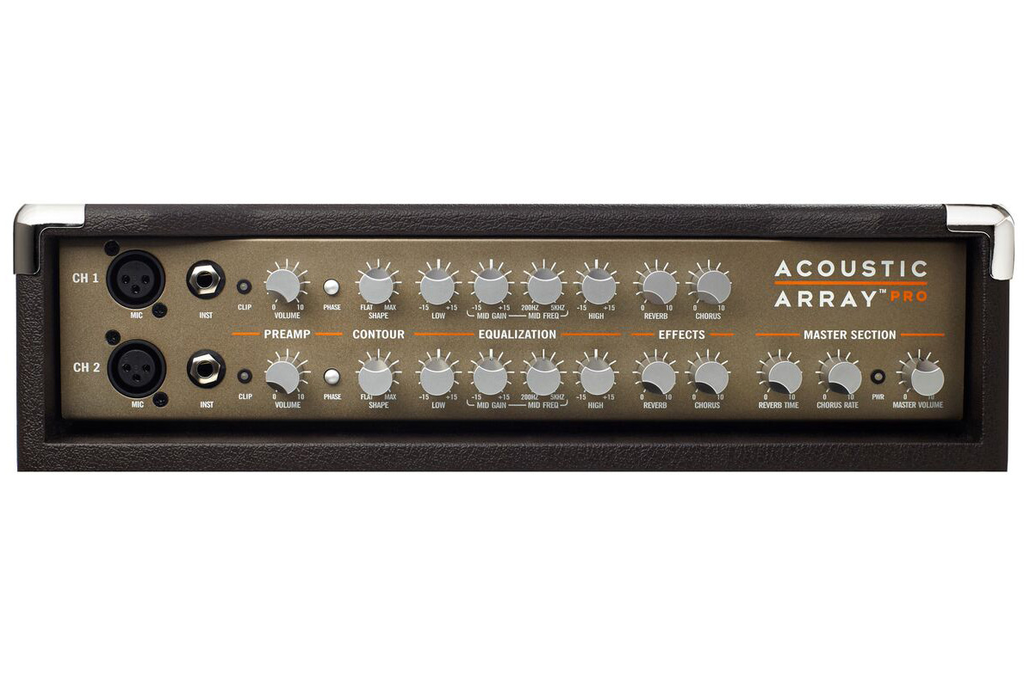 The blend of this innovative speaker system along with their preamp and amplifier platform delivers an acoustic amp like no other available. Either used as an acoustic instrument amplifier from the stage or a stand-mounted PA, the Acoustic Array™ PRO is a 27 lb versatile package ideal for a variety of uses and venues.