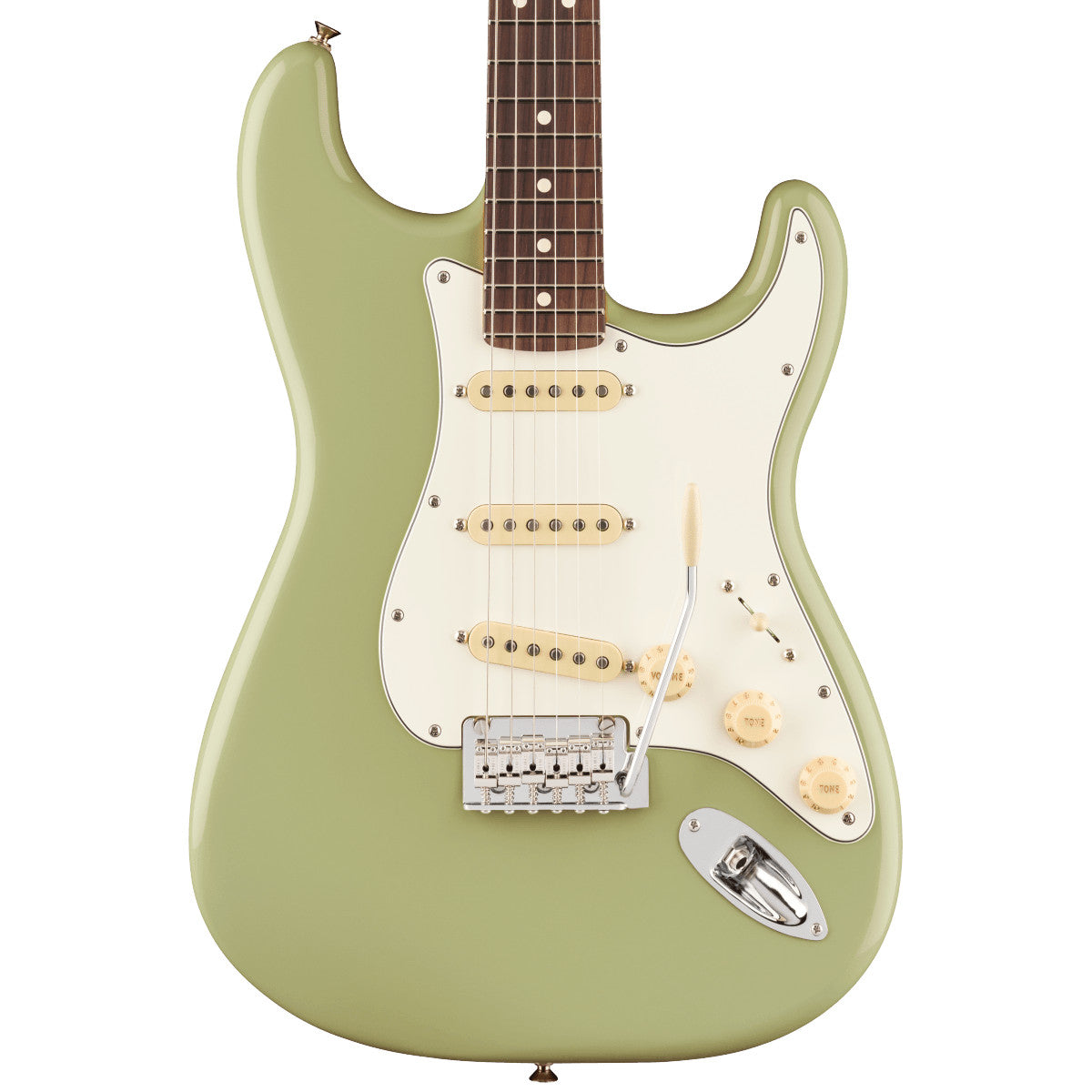 This Stratocaster features a two-point Synchronized Tremolo with bent steel saddles for definitive Strat tone with superior tremolo action for the most expressive vibrato and most daring dive bombs.