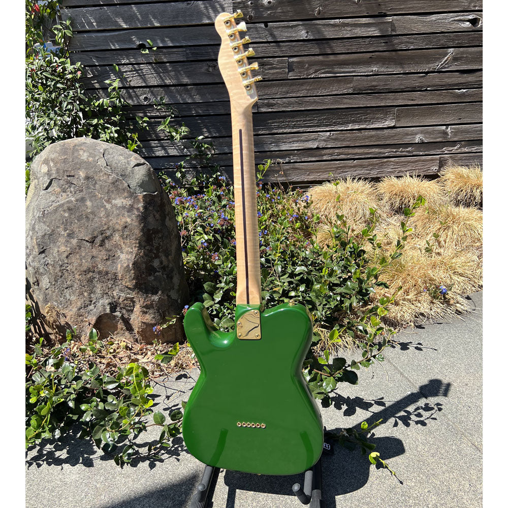 He started building standard Tele style guitars, using very light weight & very resonant Paulownia wood, and light/ resonant Okoume wood, both of which provide great tone.