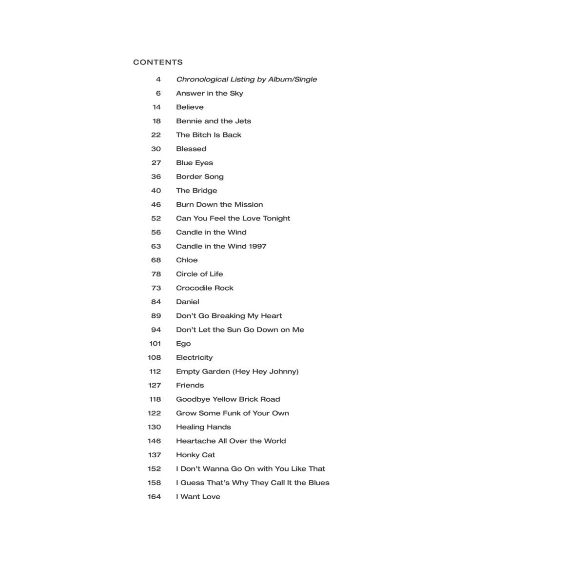 This updated edition offers 60 of Elton's best: Bennie and the Jets • The Bitch Is Back • Candle in the Wind • Crocodile Rock • Daniel • Don't Let the Sun Go Down on Me • Goodbye Yellow Brick Road • I Guess That's Why They Call It the Blues • The One • Rocket Man • Sad Songs (Say So Much) • Tiny Dancer • Written in the Stars • Your Song • and more!