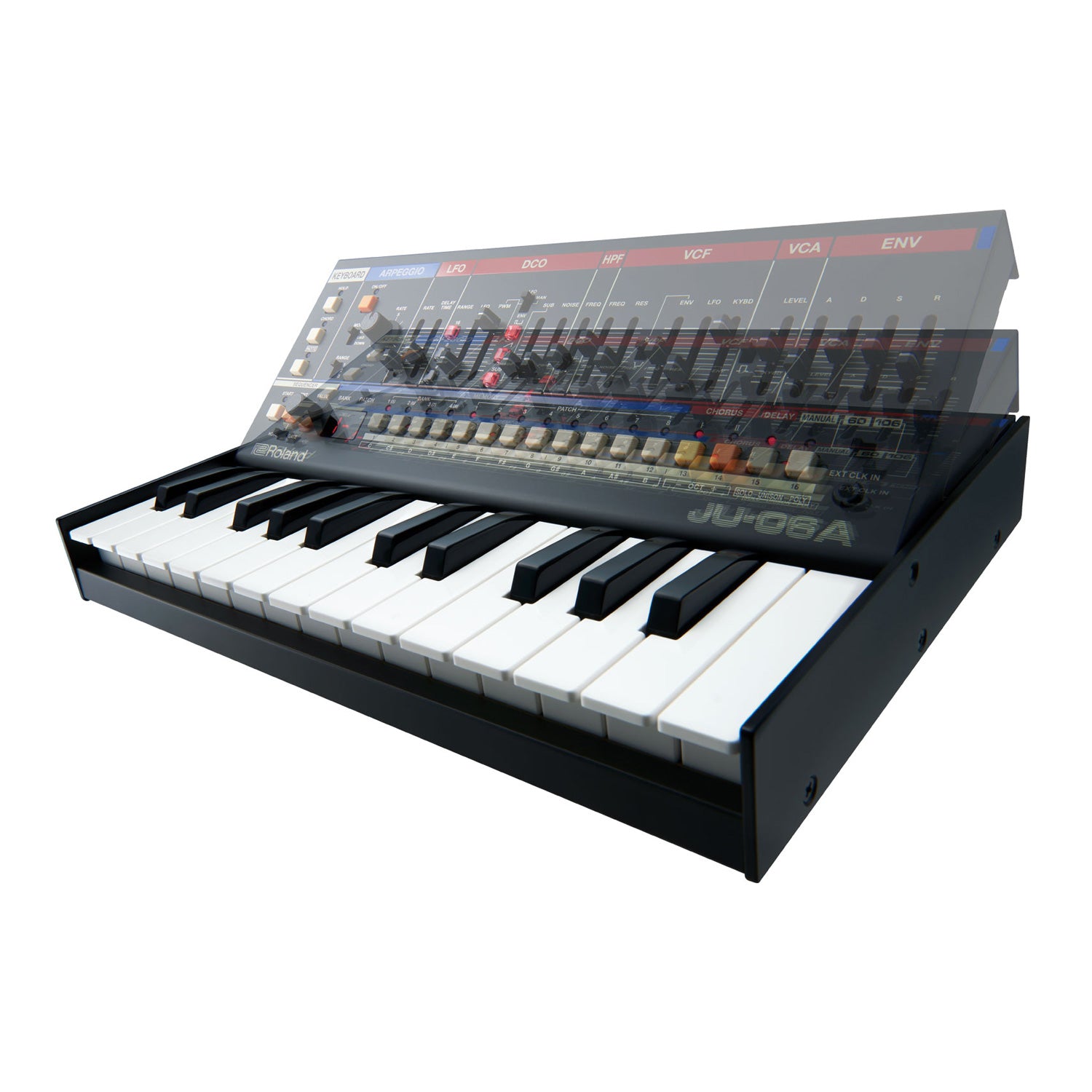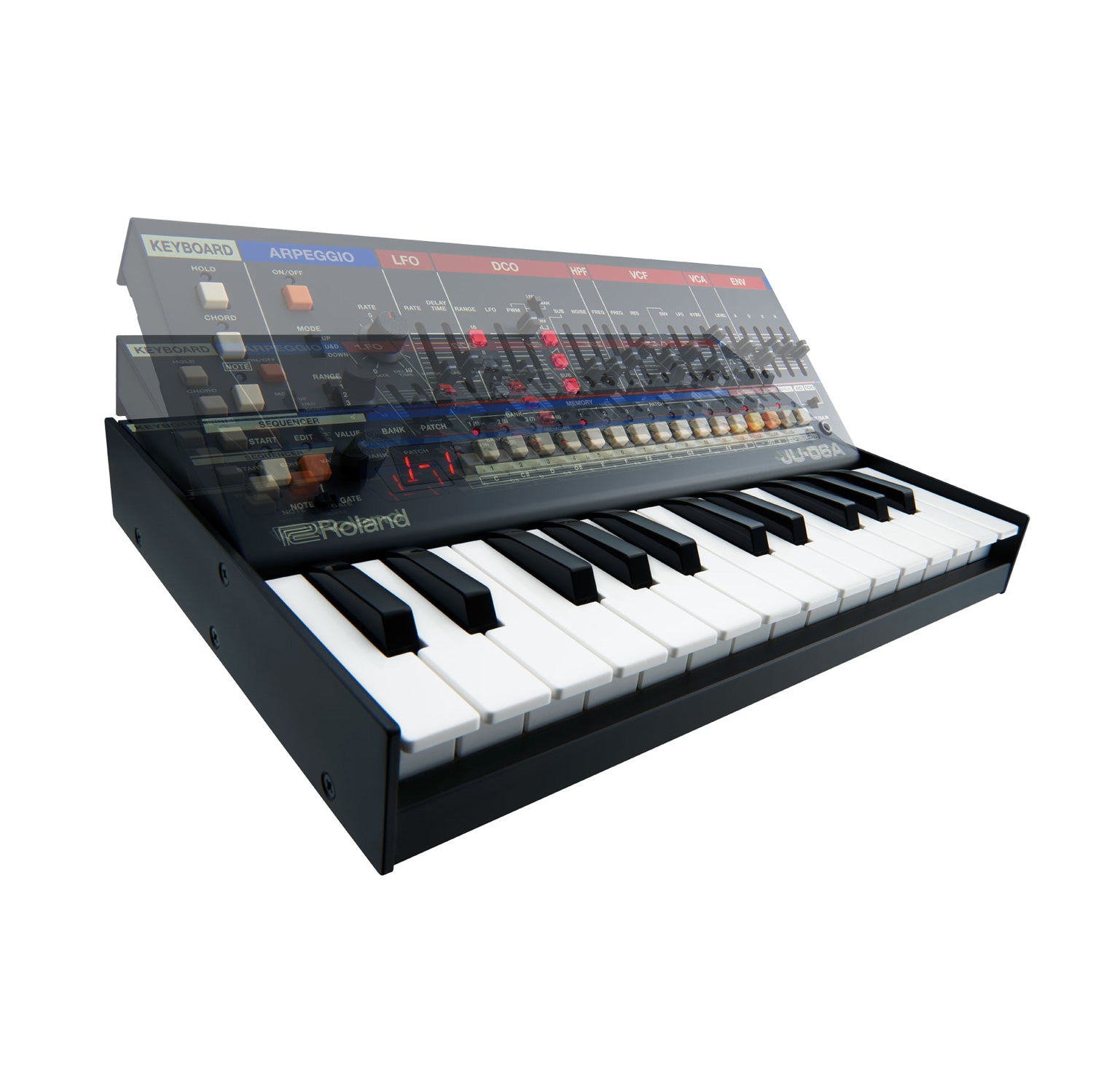 Its compact size means the JU-06A fits just about anywhere, easily controlled from a master keyboard or DAW. Add a DK-01 Boutique Dock for a polished look and three convenient tilt positions. Or add a K-25m Keyboard Unit and you have a totally self-contained, portable instrument offering an unleashed experience free of wires and other complications.