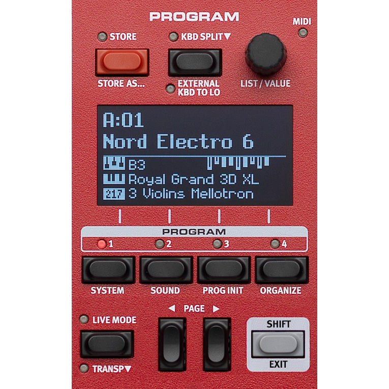 The Nord Electro 6 features automatically seamless transitions when changing sounds or programs while playing.