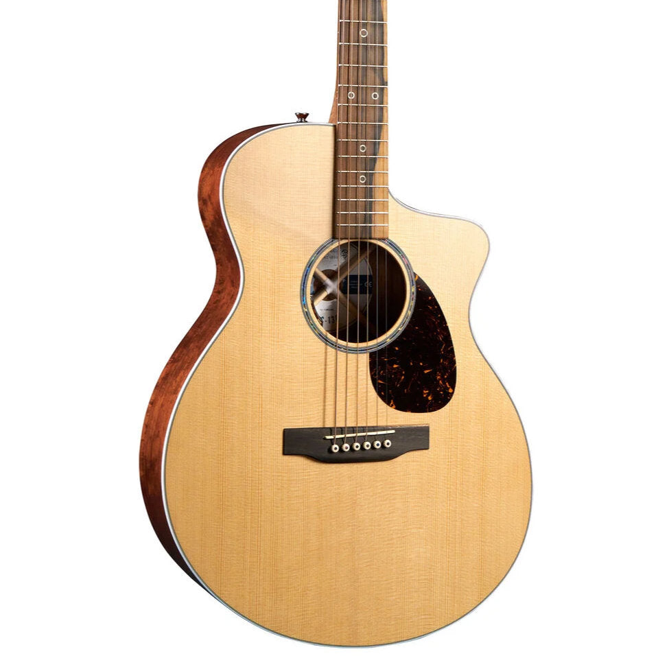 The Martin SC-13E Modern is your road to premium tone, playability, and style. Its gloss SC body and Sure Align® neck system give you full fretboard access with electric-guitar comfort, while koa fine veneer back and sides add balanced tone with rich mids, smooth highs, and long sustain. A solid spruce top and scalloped X-bracing boost clarity and projection, and the Low Profile Velocity neck keeps every position feeling fast and effortless. Eye-catching details include white binding, ziricote dot inlays, and skeletonized Ratio® tuners. Equipped with LR Baggs Element electronics for exceptional plugged-in tone and an included softshell case, the SC-13E Modern is built for players ready to push their sound—and their performance—further than ever.