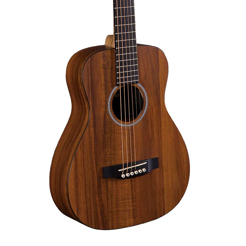 While the Little Martin® is Martin's smallest guitar; it is very big on tone, quality and versatility. The LXK2 model features figured koa high-pressure laminate (HPL) back, sides and top. It is ideal for travel, student practice or for just playing around the house or campfire. This model includes sustainable wood certified parts. See specifications for details.