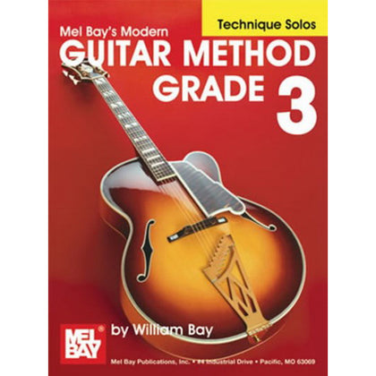 The Modern Guitar Method Book Grade 3 begins with the key of A major and immediately introduces right-hand accompaniment concepts before moving on to the relative minor key of F#. Notes in the first position on the first four strings are reviewed before approaching scales, chords and etudes in keys of B-flat major/G minor, E-flat major/C minor, and A-flat major/F minor. Includes theory lessons regarding intervals, harmonized scales, triads, expression marks and syncopation plus techniques of glissando, ascending and descending slurs, and tremolo. The CD features William Bay on guitar and is recorded in a split-track format, allowing the student to play solo parts, accompaniment, or both! Standard notation only.