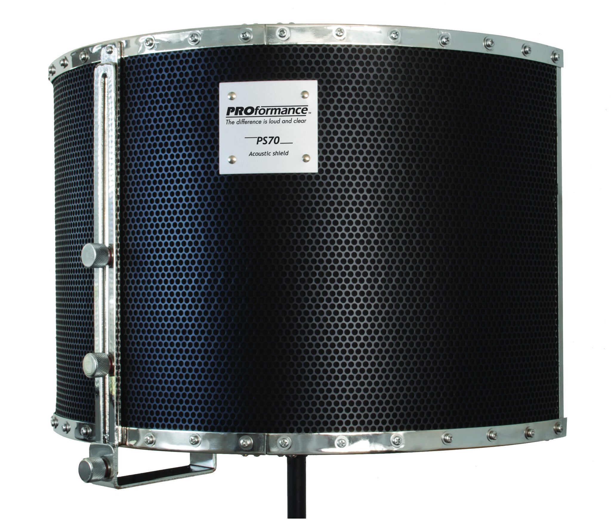 The PROformance™ PS70 was developed as an effective accessory for the home recording engineer. When effectively utilized, it can substantially reduce problems such as unwanted reflections, echo flutter and unwanted environmental acoustic interference. A hands on approach was used to design an easy to set up, highly flexible device, while not sacrificing its stand mounted stability. The PS70 is constructed from high quality stainless steel and high density micro cell acoustic foam along with a high quality absorptive wool layer for added acoustic performance. The acoustic-shield is supplied with mounting hardware to adapt to most microphones for easy, flexible placement. The PS70 is an essential tool for enhanced home studio recording and a vital accessory for the professional musician.