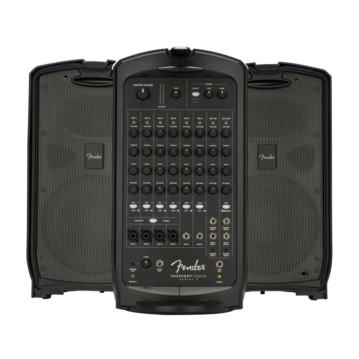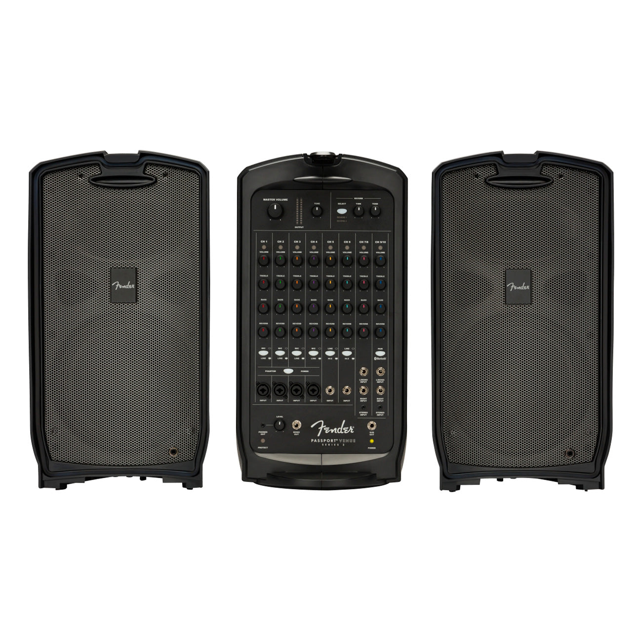 Maximize the sonic punch of any large performance with the Passport Venue Series 2 portable sound system. Featuring Bluetooth® audio streaming and XLR ¼” combination jacks for increased connectivity, Passport® Venue Series 2 has full-range speakers, versatile features, friendly front-panel controls and 600 watts of power for strong, clear and reliable Fender sound ideal for larger venues and occasions—including band and DJ gigs; education, sporting and worship events; meetings, seminars and presentations and more.